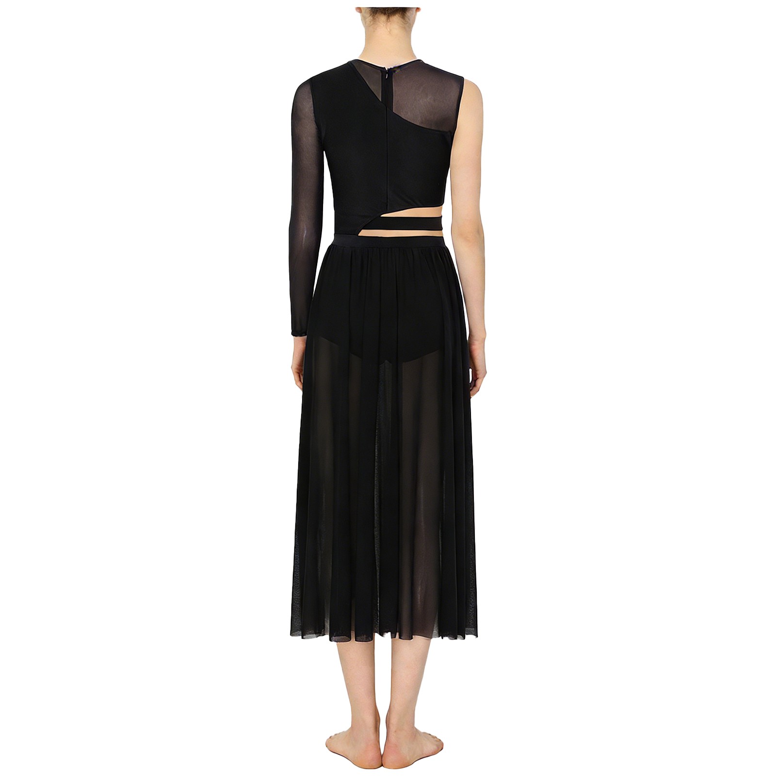 Womens Lyrical Dance Dress Cutout Mesh Patchwork Latin Performance Costume