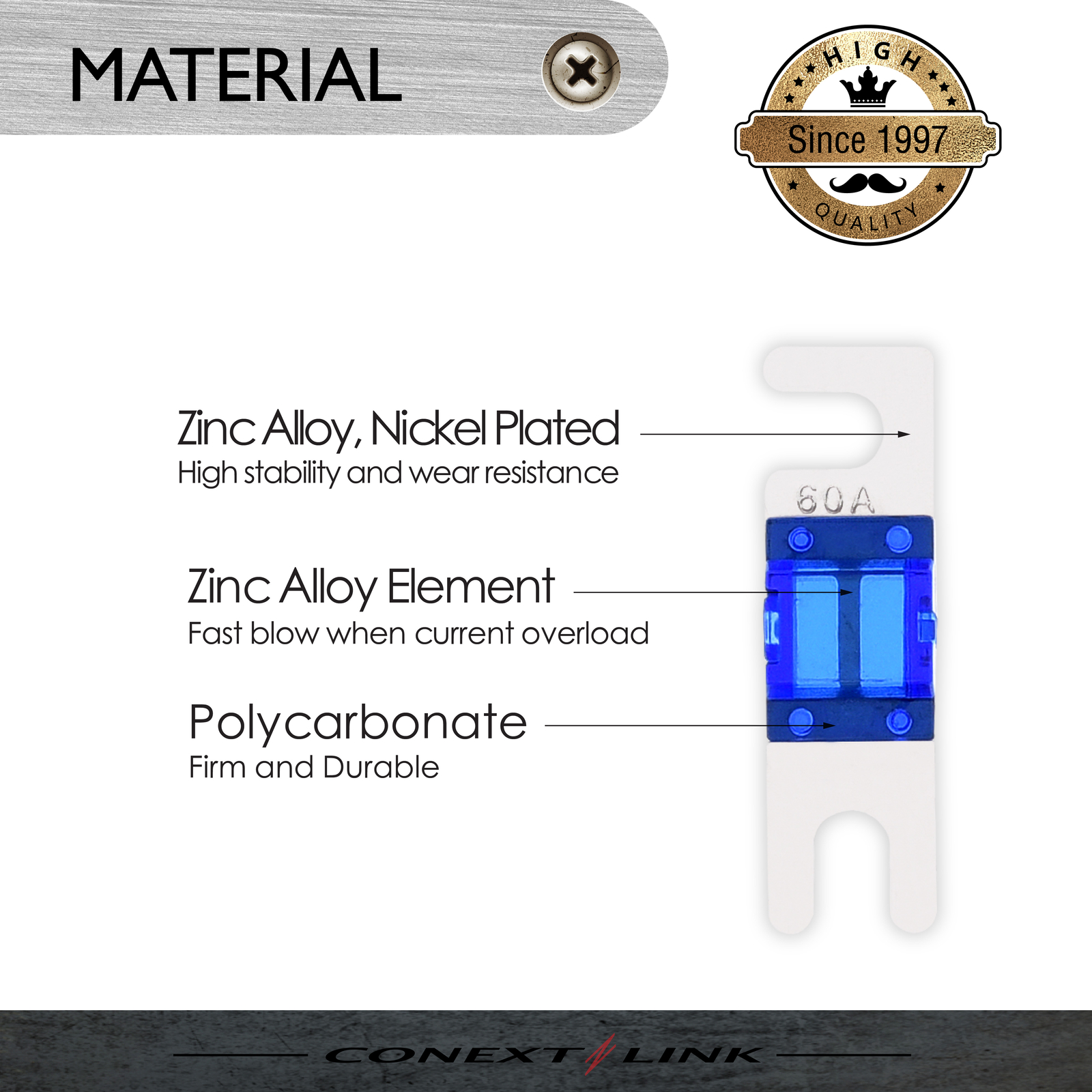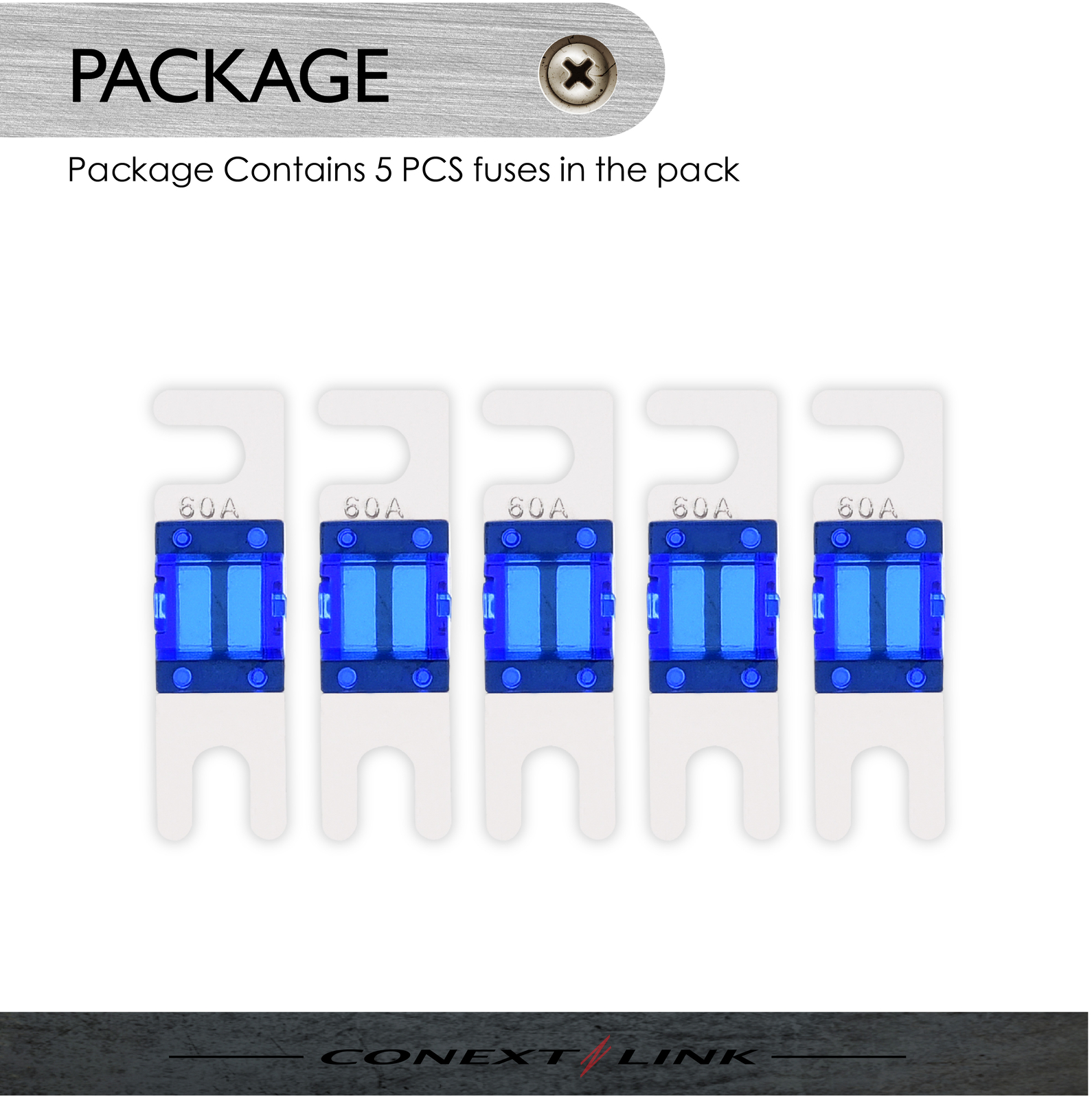 5pcs 60 A Amp AFS MIDI Mini ANL Fuse Auto Stud Fuses Nickel Blade Boat Car Audio
