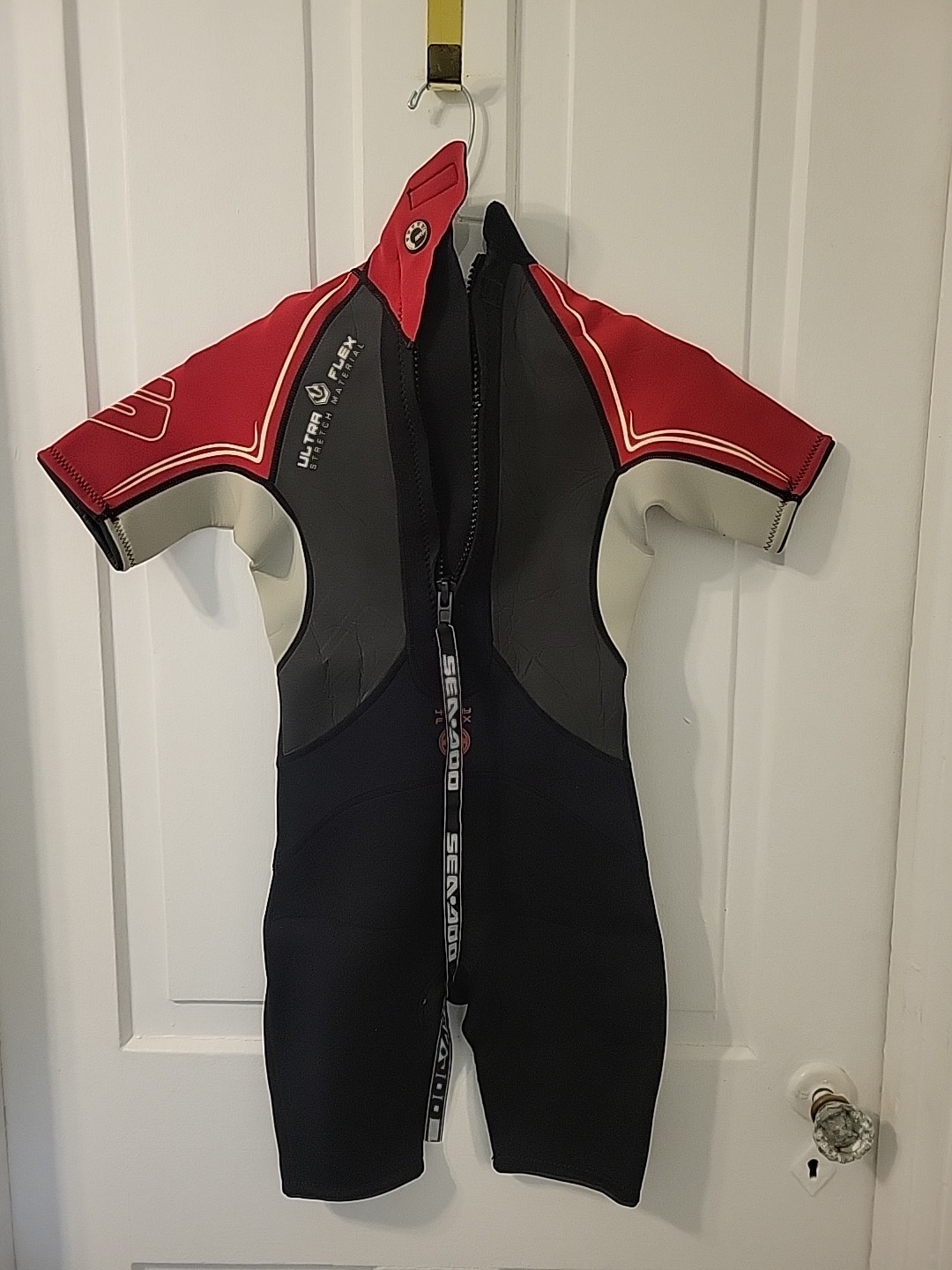 SeaDoo 4-Way Ultra Flex Stretch Material Black Wet Suit Youth 10 Secret Pocket