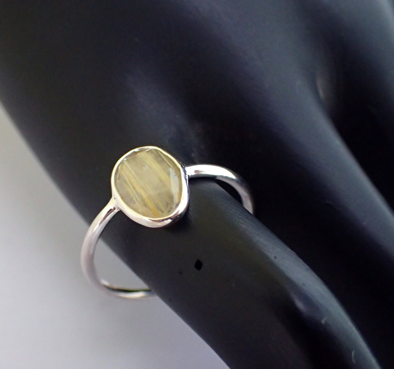 Handmade Rutile Quartz Band Ring in 925 Sterling Silver Natural Gemstone Size 8