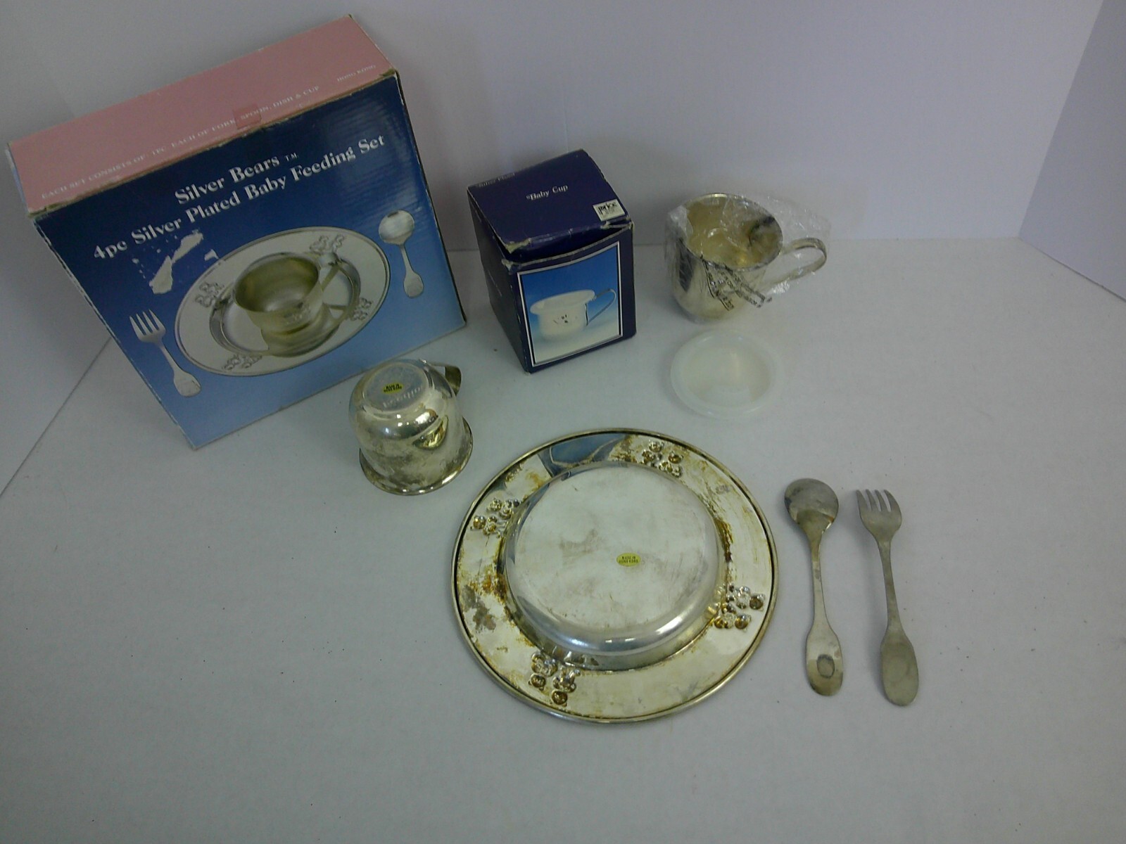 Set of 2 Silver Plated Baby Bears Feeding Set 2 Mugs Duck Bear Mug