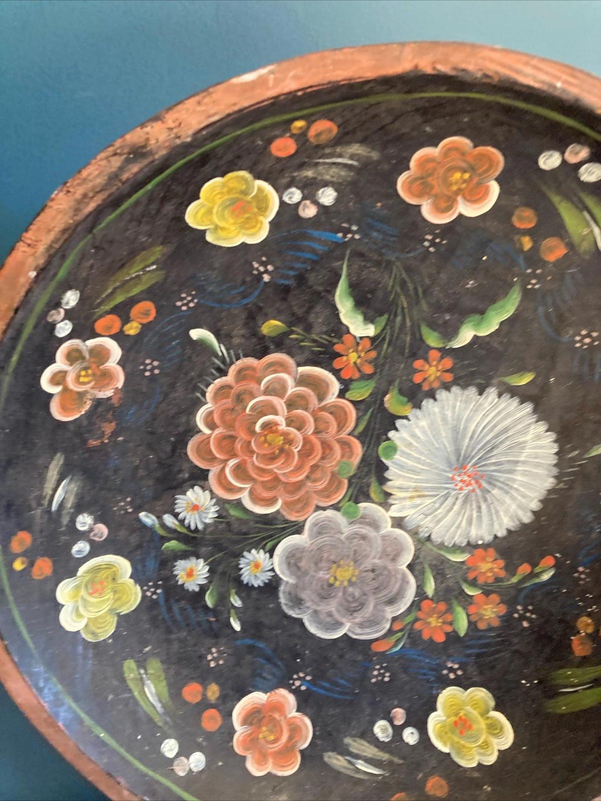 как выглядит Vintage Hand Painted Carved Decorative Wooden Bowl 14.5" фото