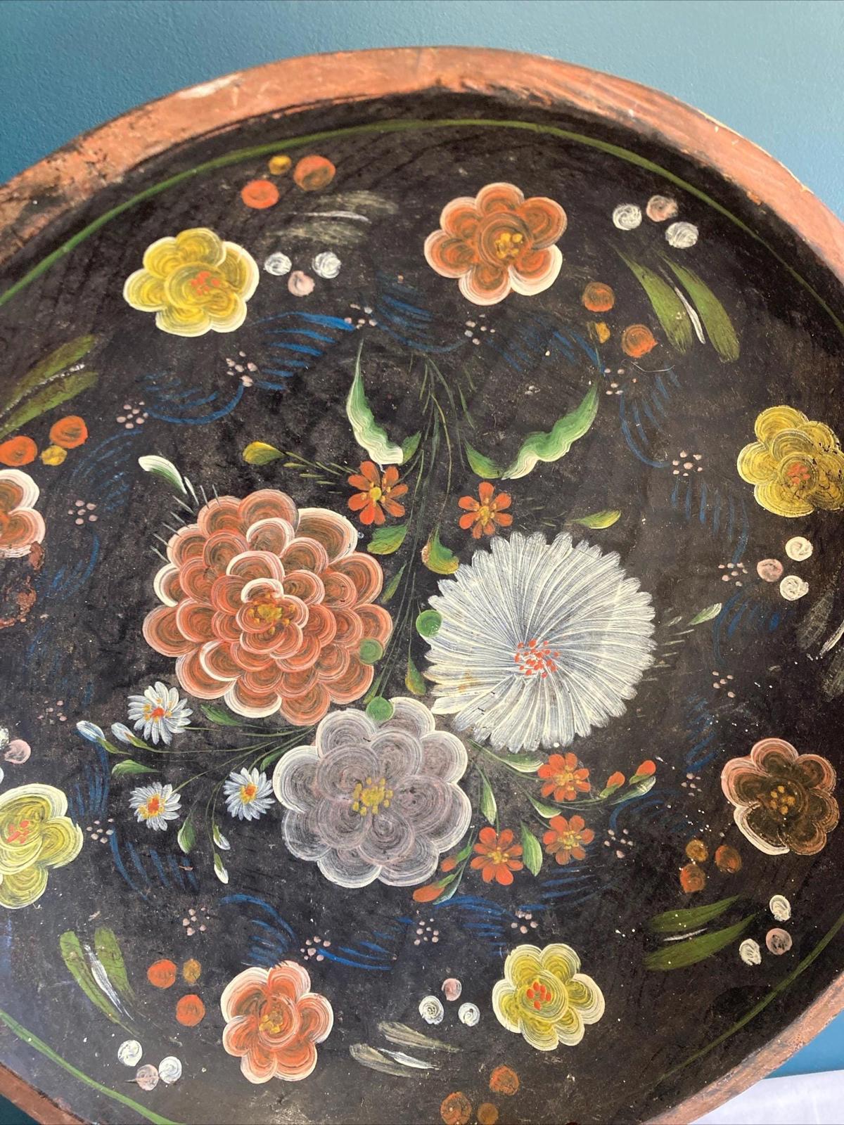 Vintage Hand Painted Carved Decorative Wooden Bowl 14.5