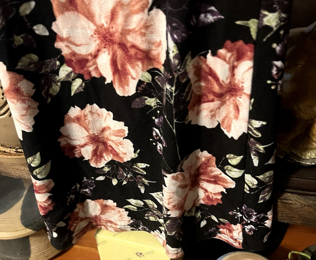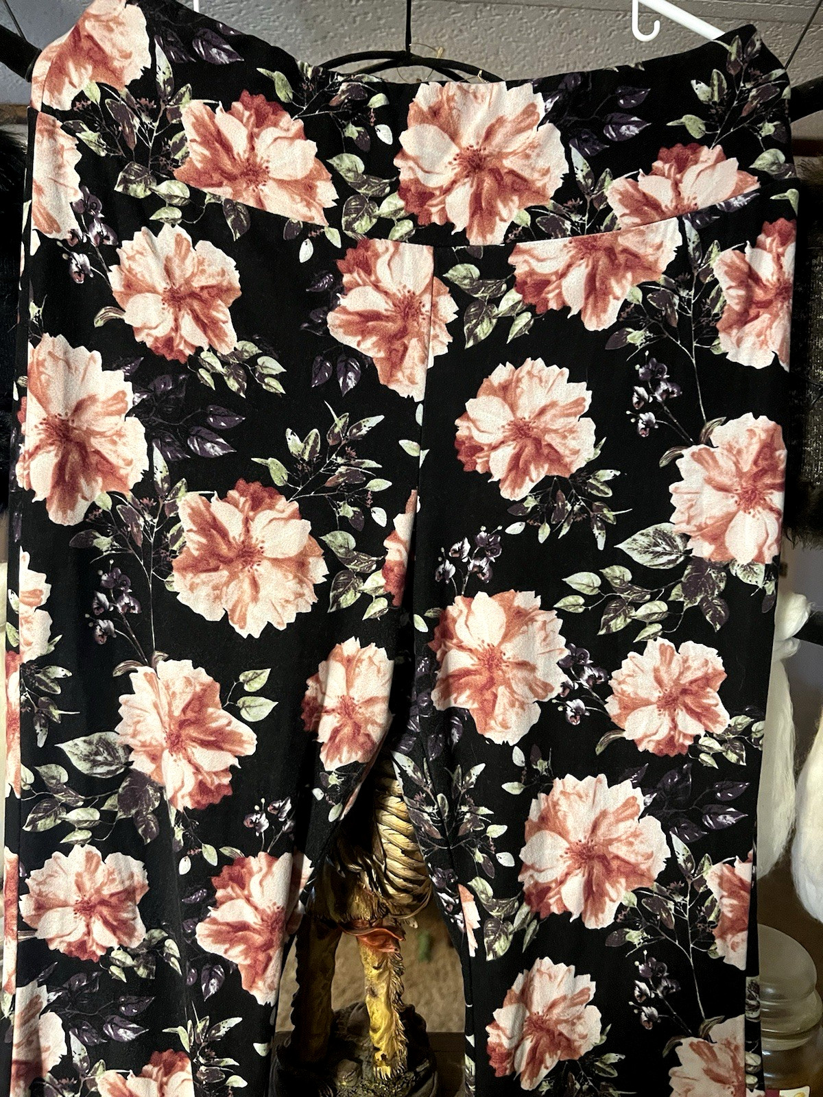 No Boundaries XL 15-17 Boho Bell/Flare Bottom Stretch Pant Black/Pink Floral