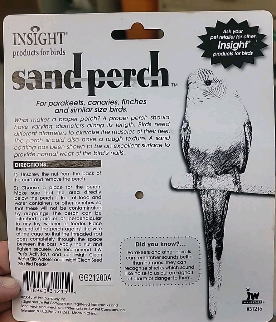 JW INSIGTH Sand Perch for Parakeets, Cockatiels and Similar Sized Birds 2