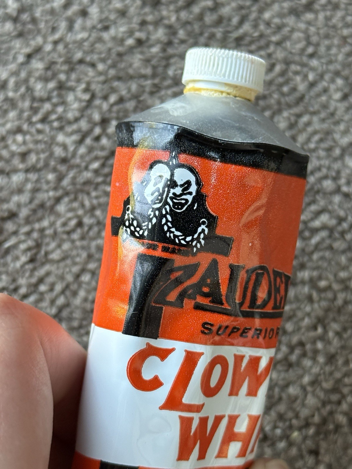 как выглядит Vintage Zauders Halloween Clown White Make Up 4.5 Oz Retro Horror SFX 70s 80s фото