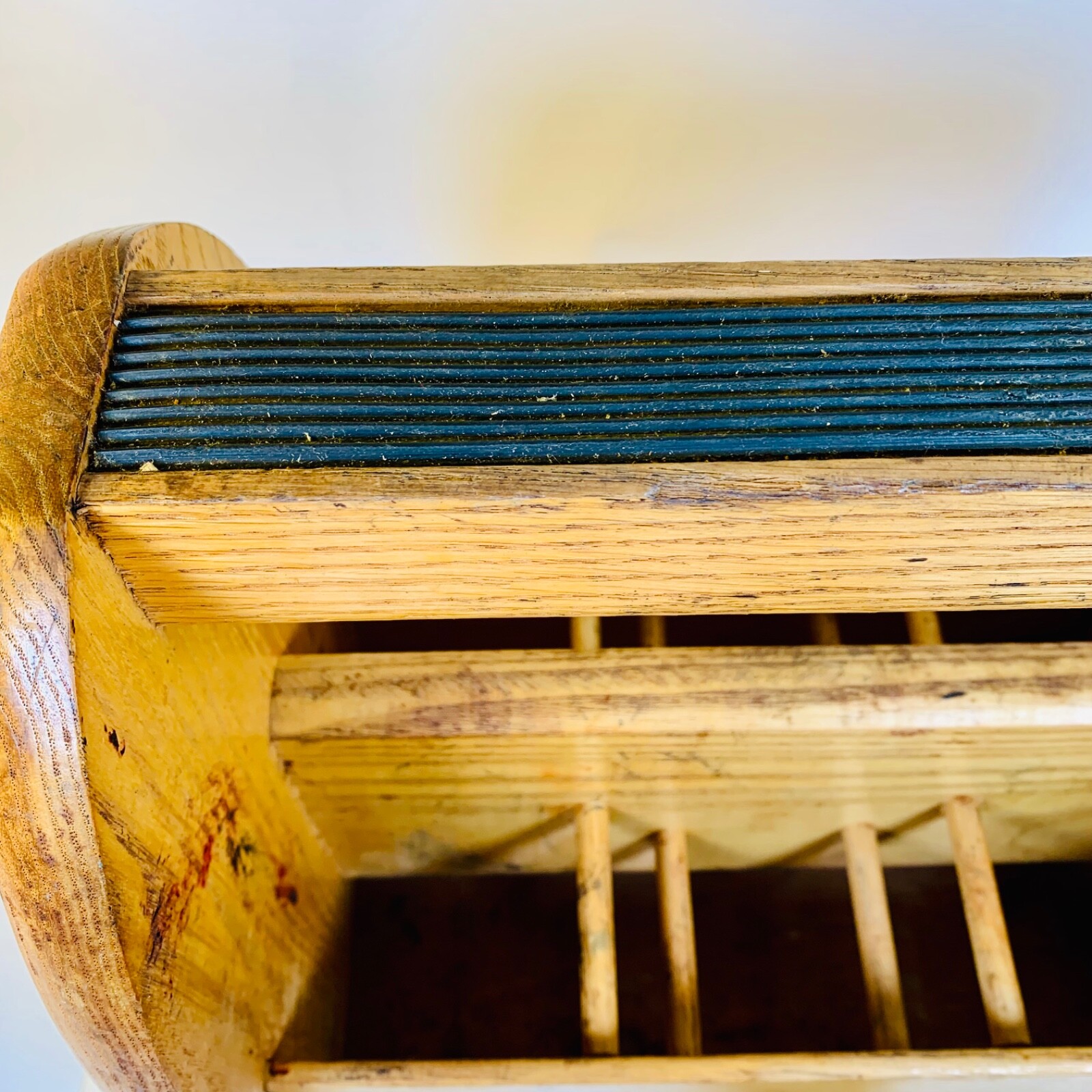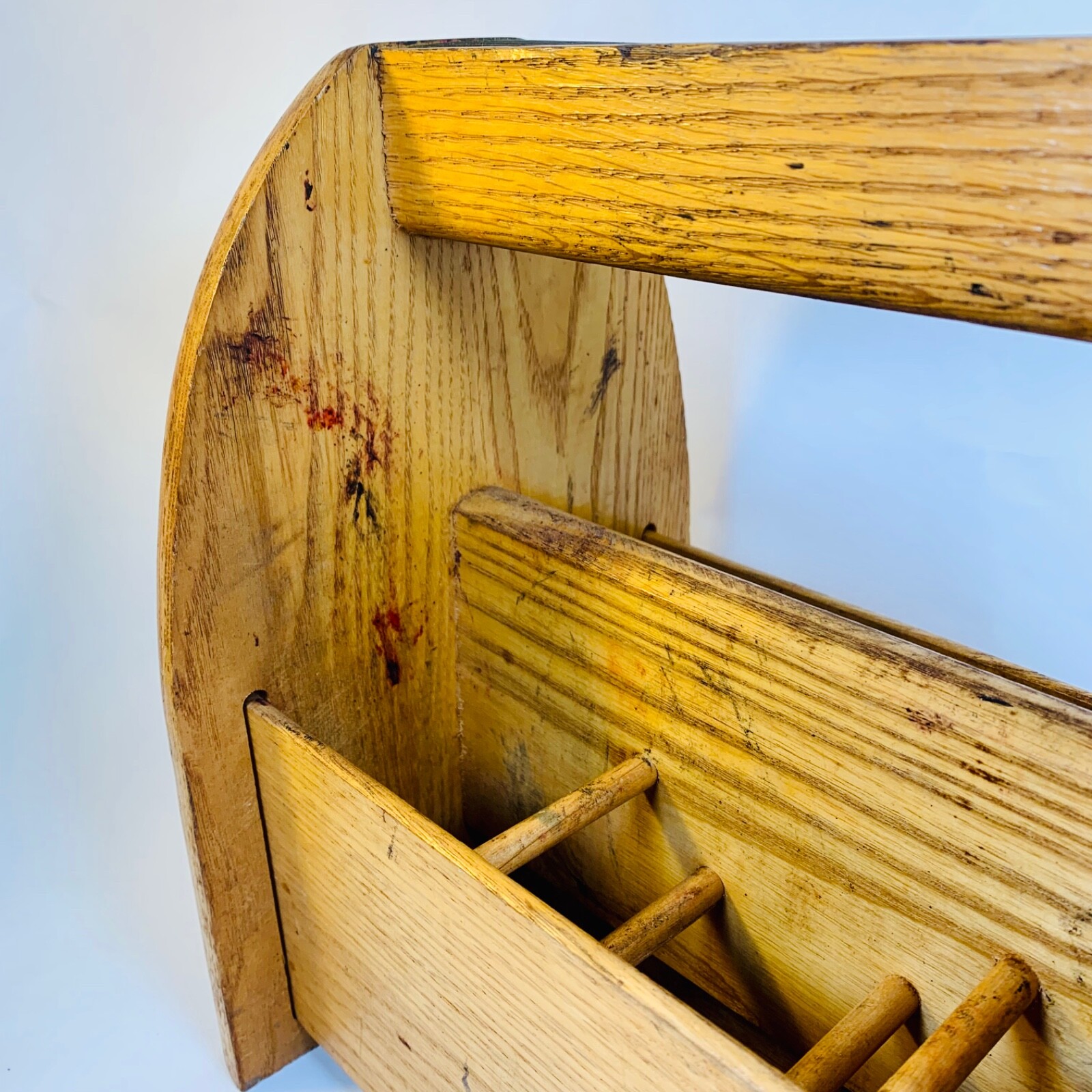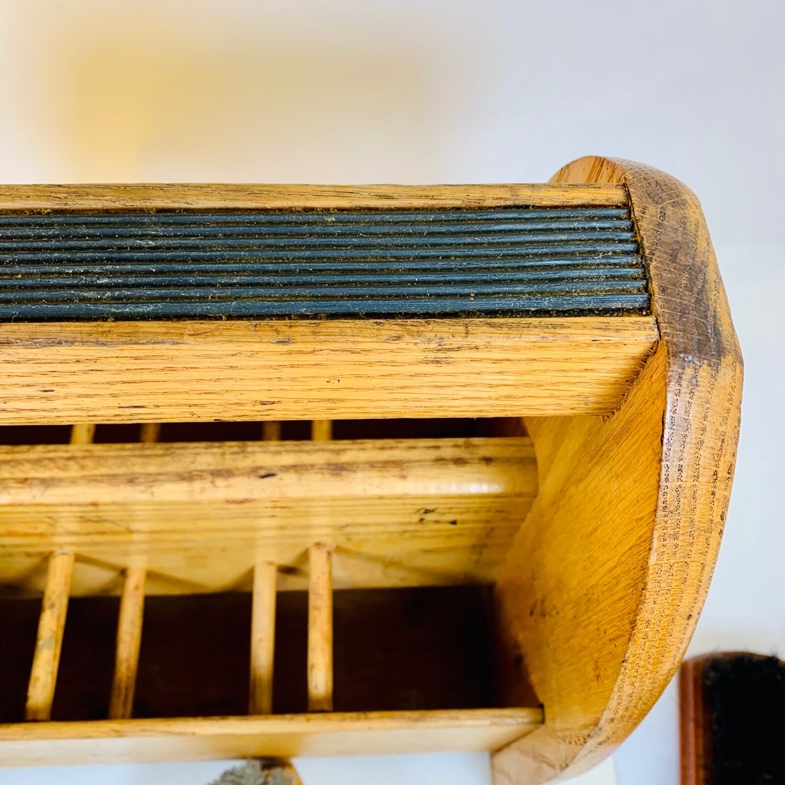 Vintage Oak Shoe Shine Kit Caddy Foot Box With 3 Vintage Brushes 1950-60 Era