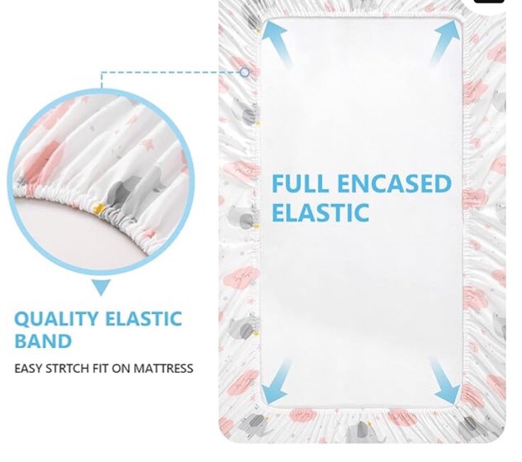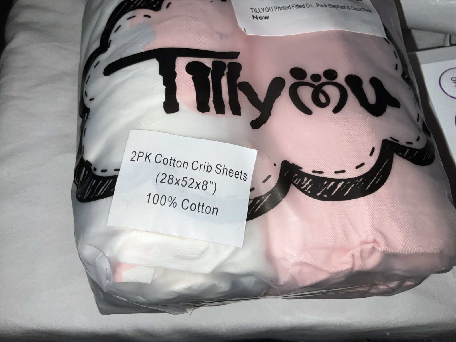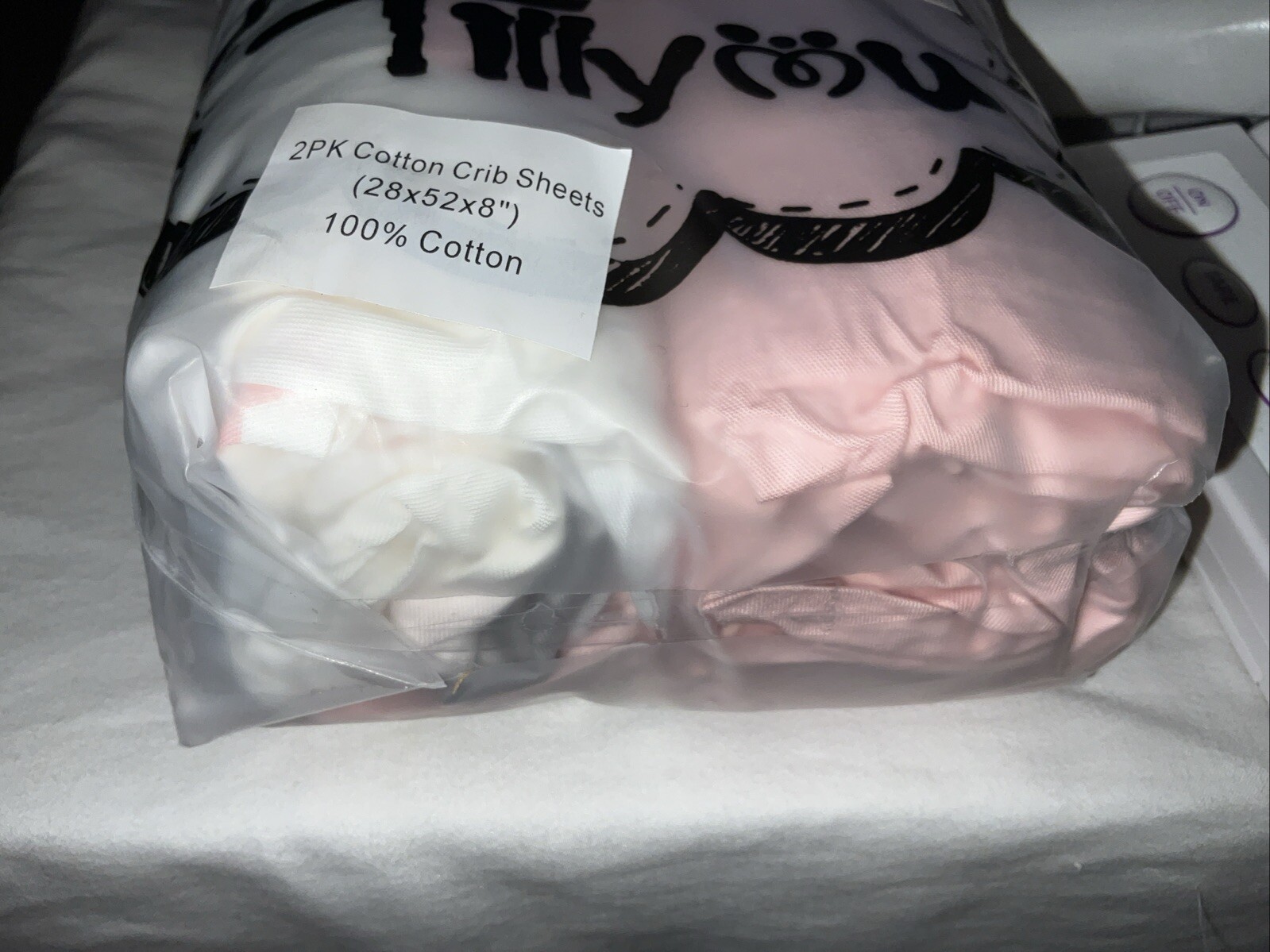 Fitted Crib Sheets TILLYOU 1 Pink 1 white/pink 28inx52in x 8in 100 Cotton, New