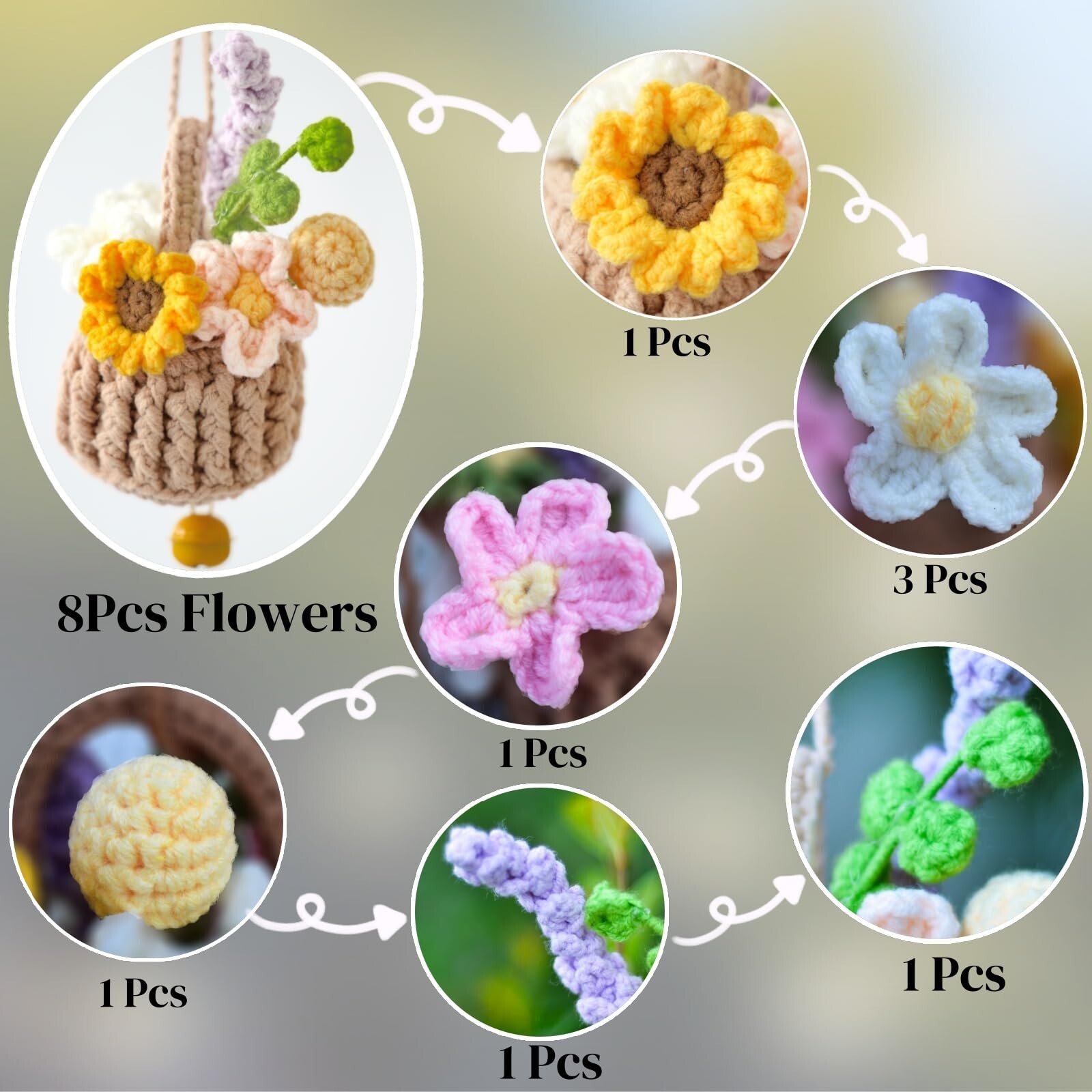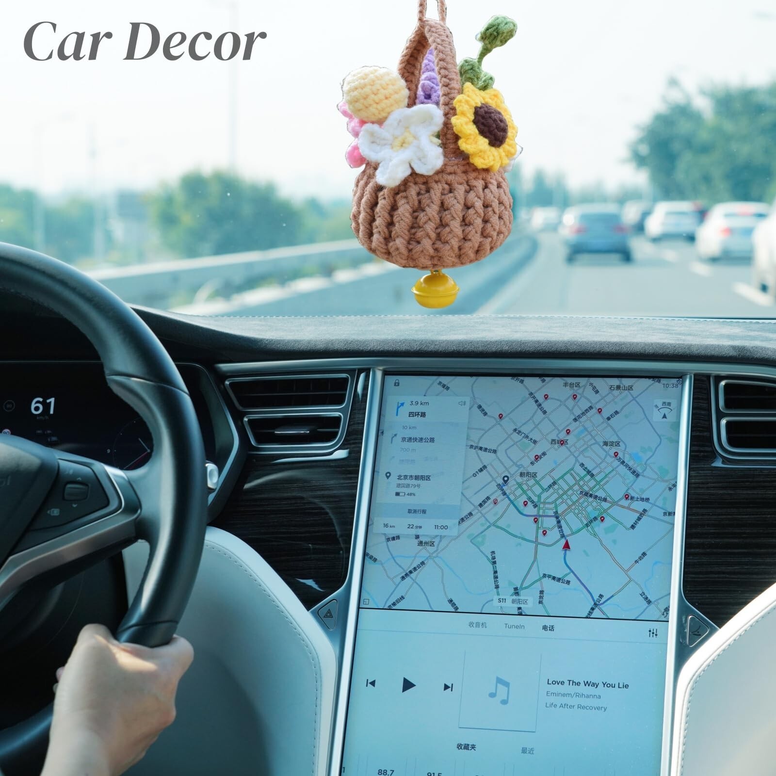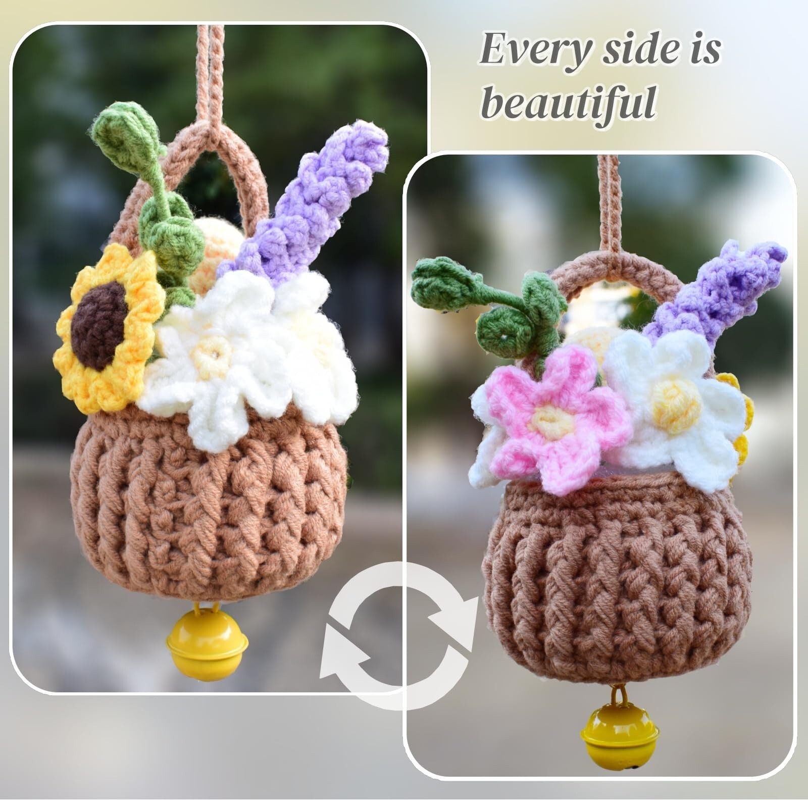 Car Mirror Hanging Accessories,Crochet Plant Decor, Boho Knitted Flower Baske...