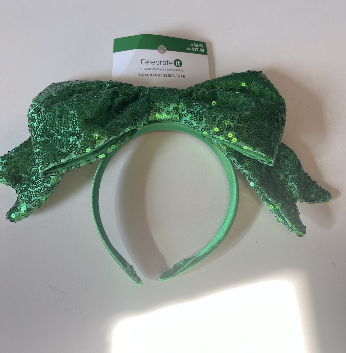 Girls / Women's Sparkle Green Bow Headband. St. Patrick s Day / Costume. New.