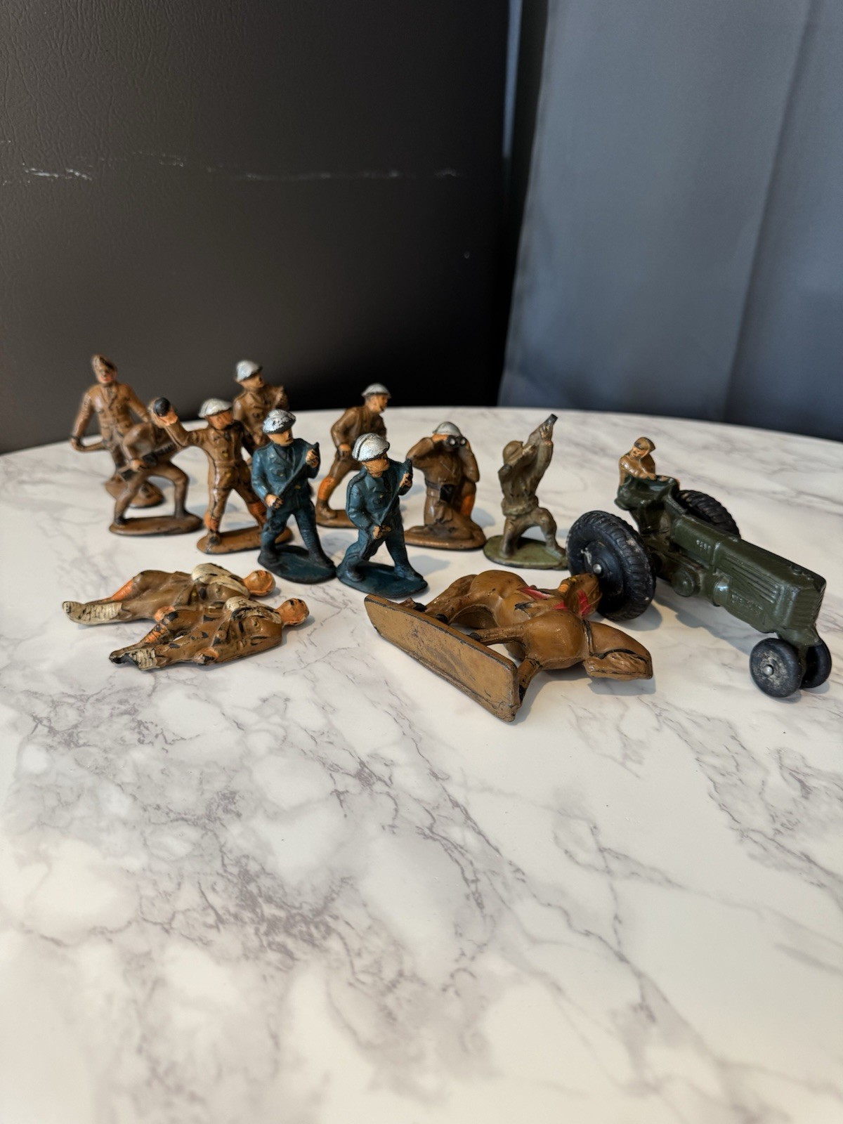 VTG BRITAINS LEAD MIXED TOY SOLDIERS ARMY WAR LOT OF 13 FOR RESTORATION-ENGLAND