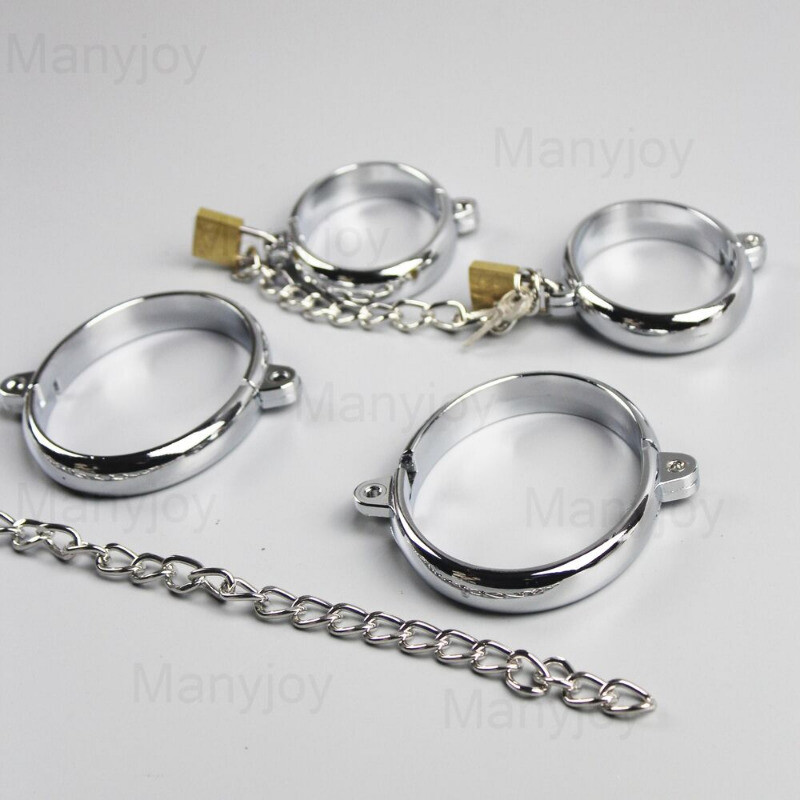 Bondage Metal Handcuffs Ankle Cuffs with Chain Lock Restraint Wrist Slave