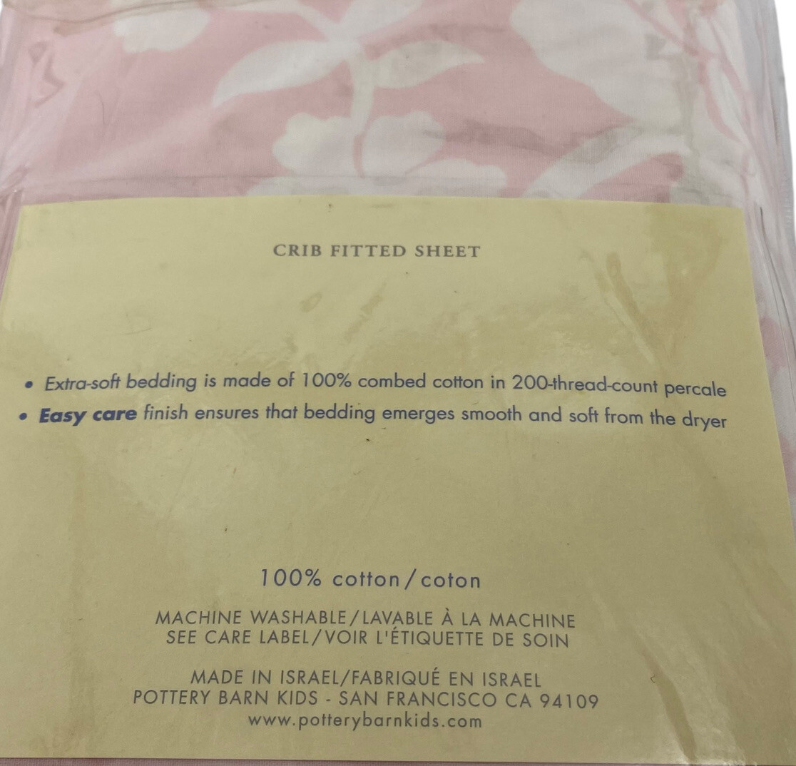 как выглядит New Pottery Barn Kids ELIZA Floral Pink Cotton Crib FITTED SHEET White Flowers фото