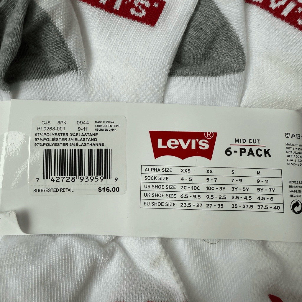 как выглядит Levis Kids boys Mid Cut 12 pairs Socks size M shoe size 5-7Y NWT фото