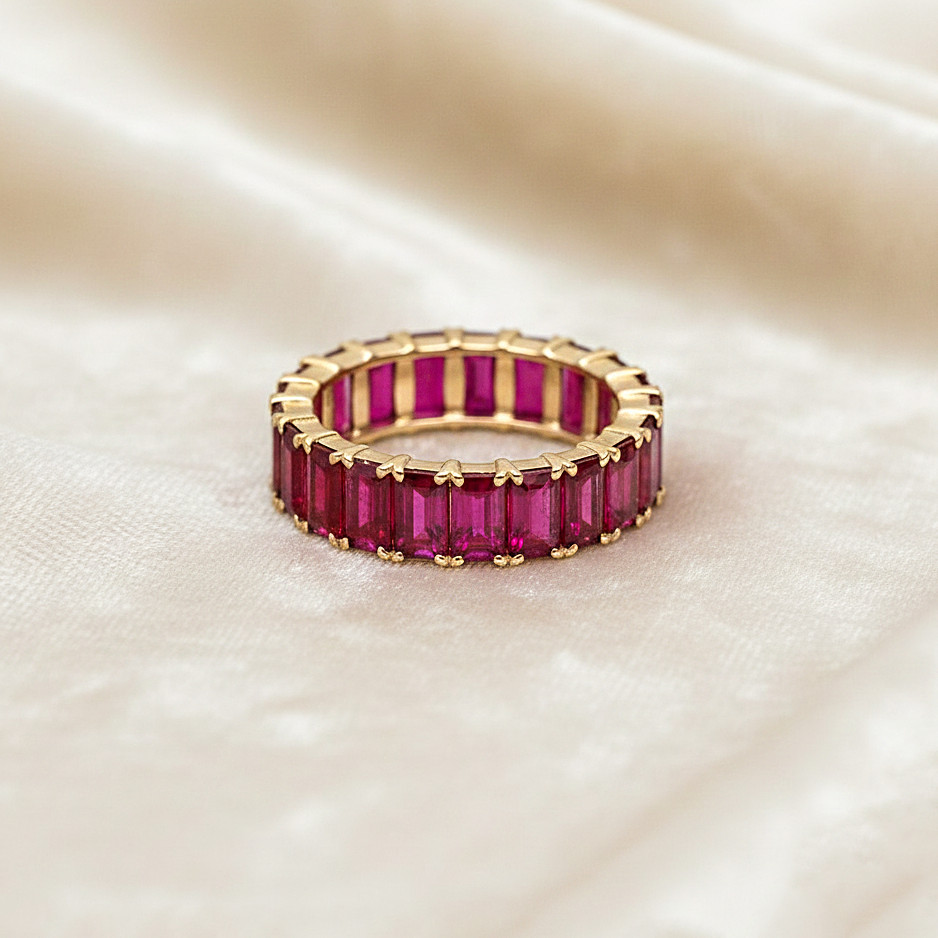 Emerald Cut Ruby Eternity Wedding Band Ring 925 Sterling Silver, July Birthstone