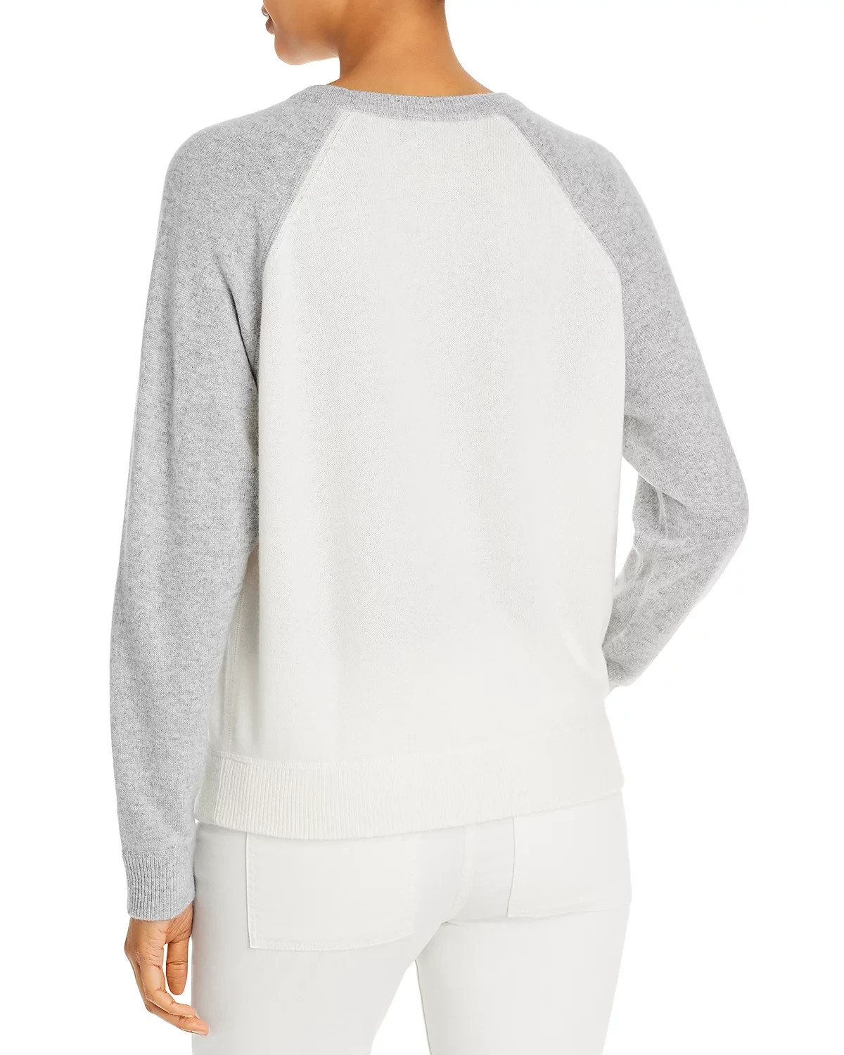 Aqua L110005 White/Grey Color Block Raglan Sleeve Cashmere Sweater Size XS
