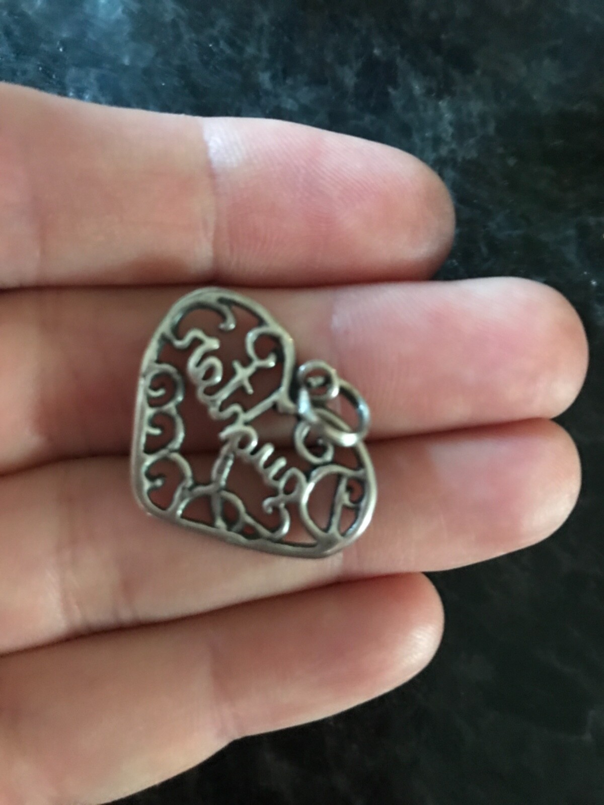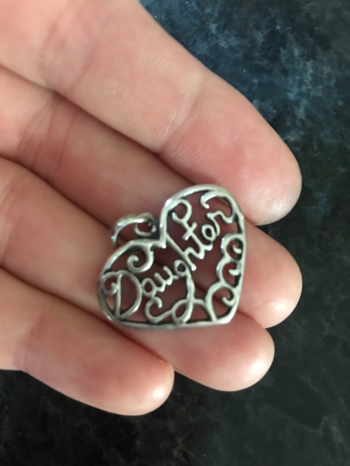 Sterling silver DAUGHTER pendant 1 wide 3 grams , no chain; heart lace filigree