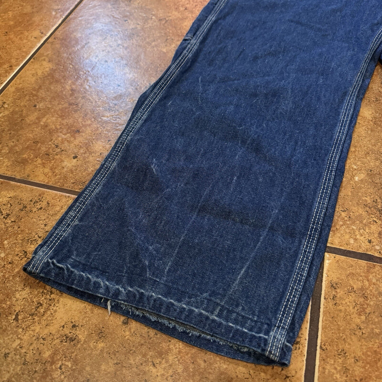 Vtg Big Mac Overalls Union Made Sanforized Square Bak Blue Denim 34x25 DARK 60s
