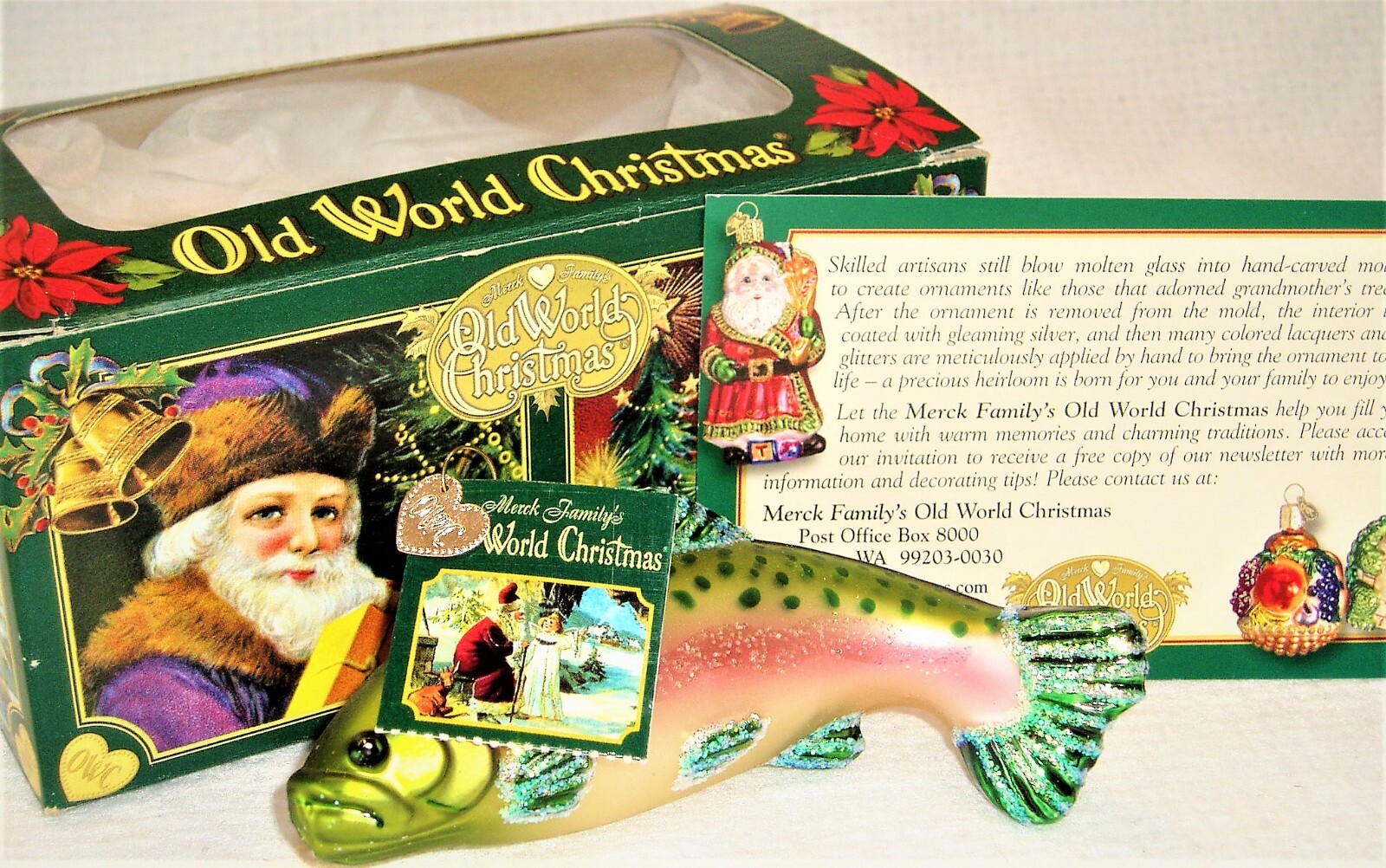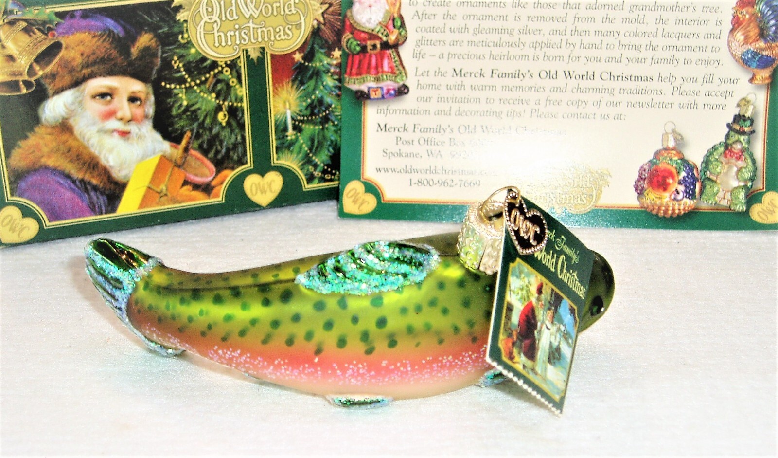 • NWT OLD WORLD CHRISTMAS "GONE FISHIN" RAINBOW TROUT BLOWN GLASS ORNAMENT