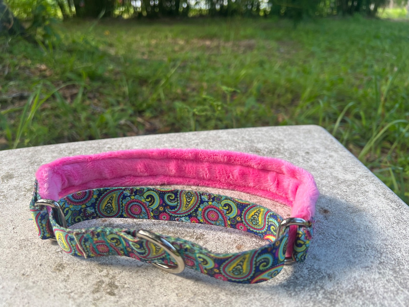 1 inch wide Soft Padded Minky Martingale Dog Collar - Paisley Agility Collar