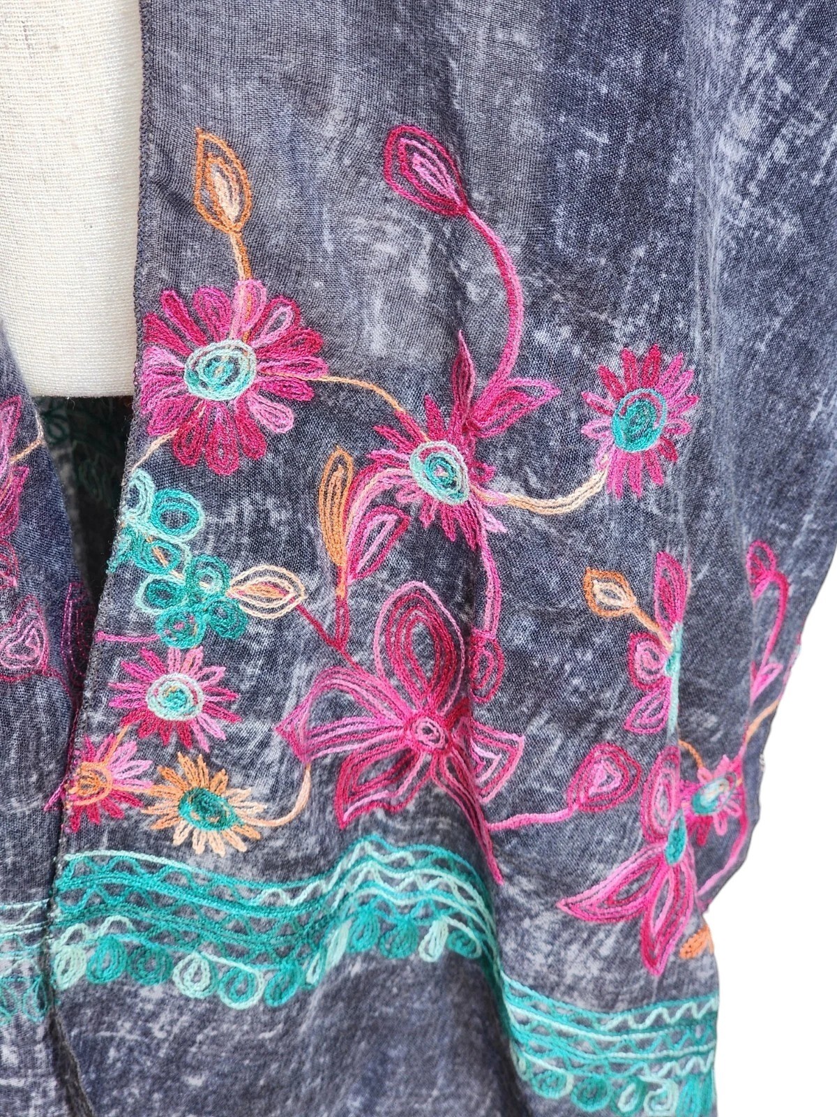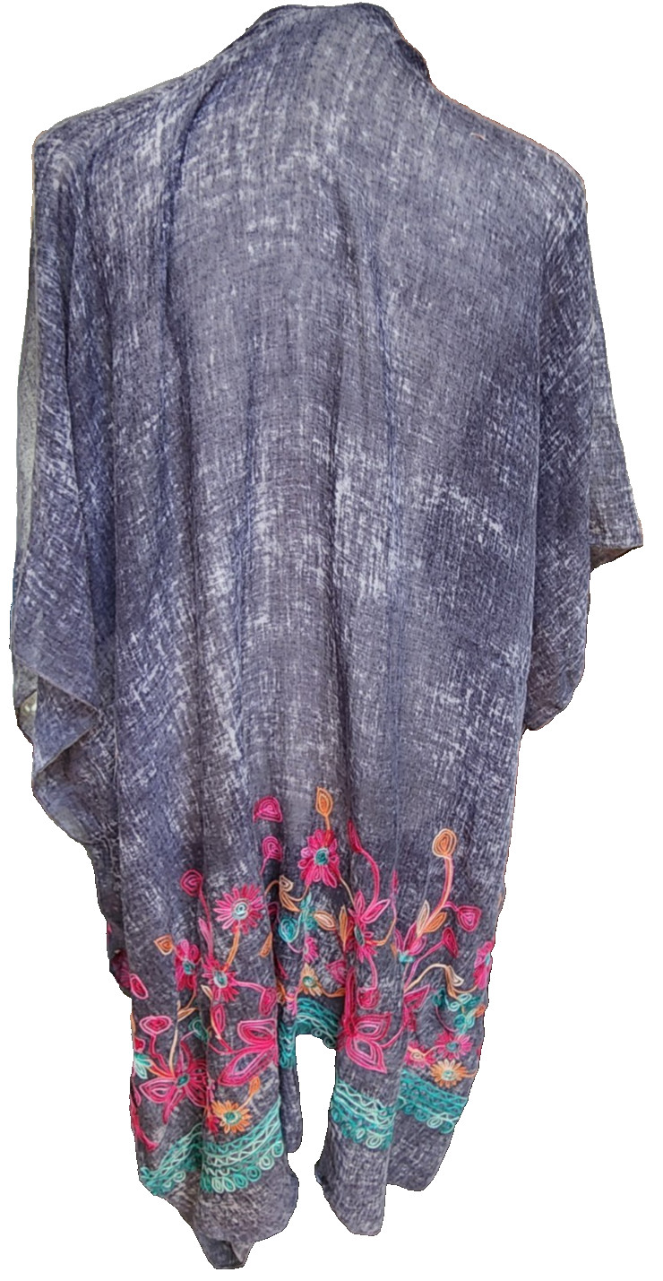 Boho Embroidered Kimono Open Front One Size Hippie Artsy