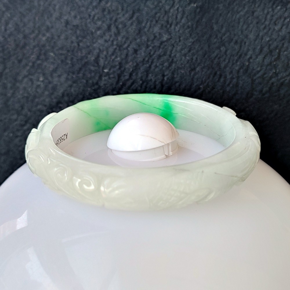 как выглядит Certified Green 56mm Natural Burma A Jade jadeite Carved Bangle Bracelet 4905 фото