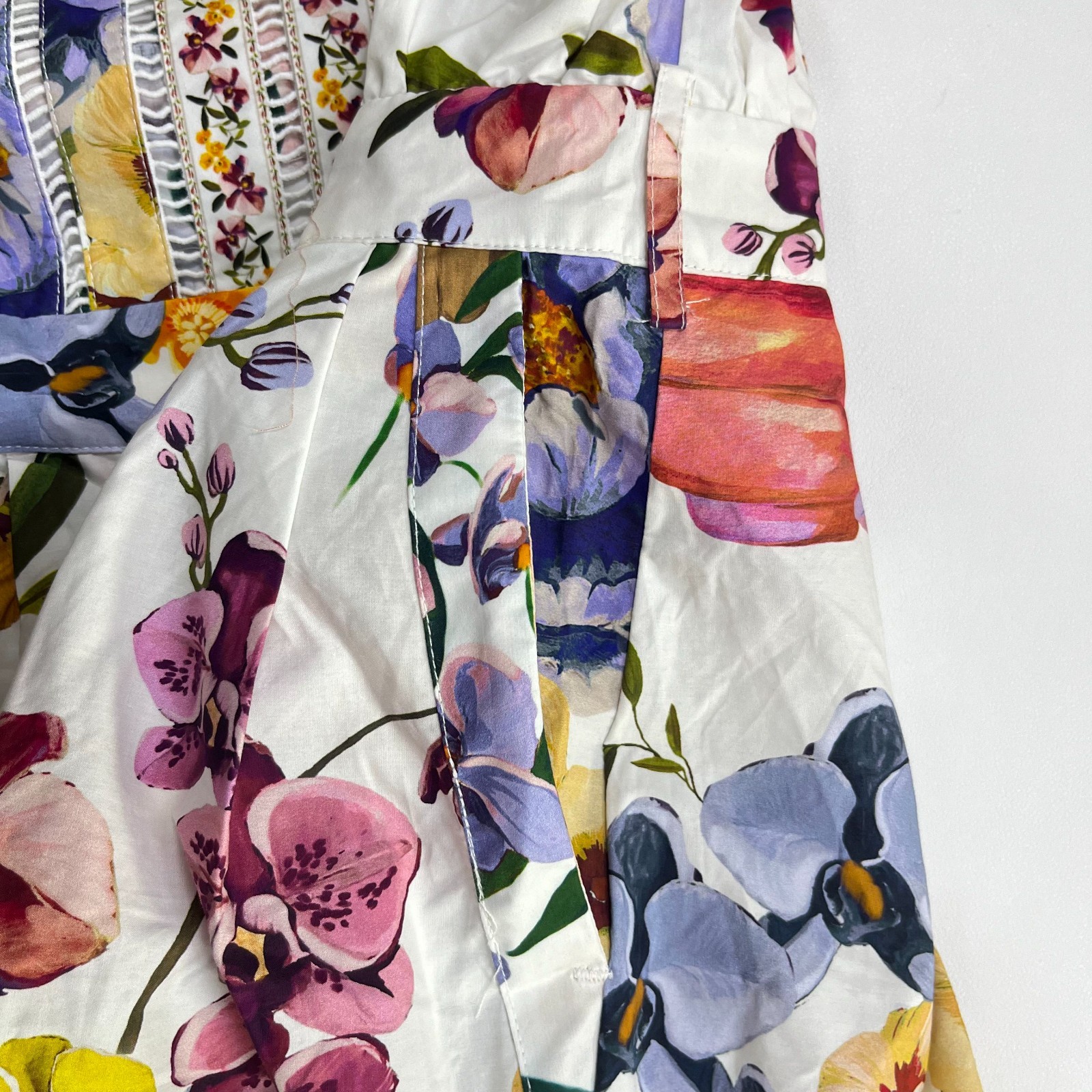 NWOT Farm Rio Greek Garden Long Sleeve Plunge Neck Cotton Romper Size XS
