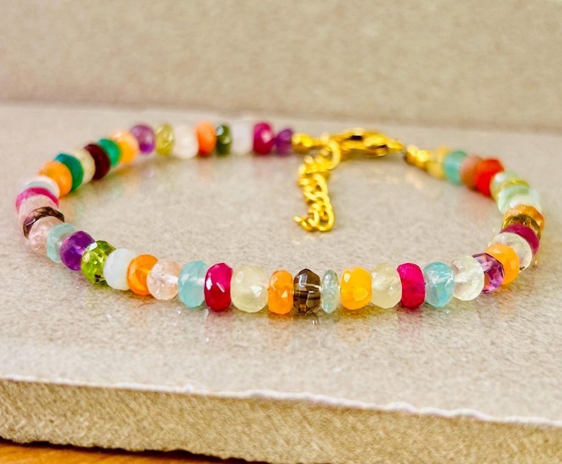 как выглядит A Natural 3-4MM Multi Mix Faceted Rondelle Gemstone Beads Women Bracelets 6-8 фото