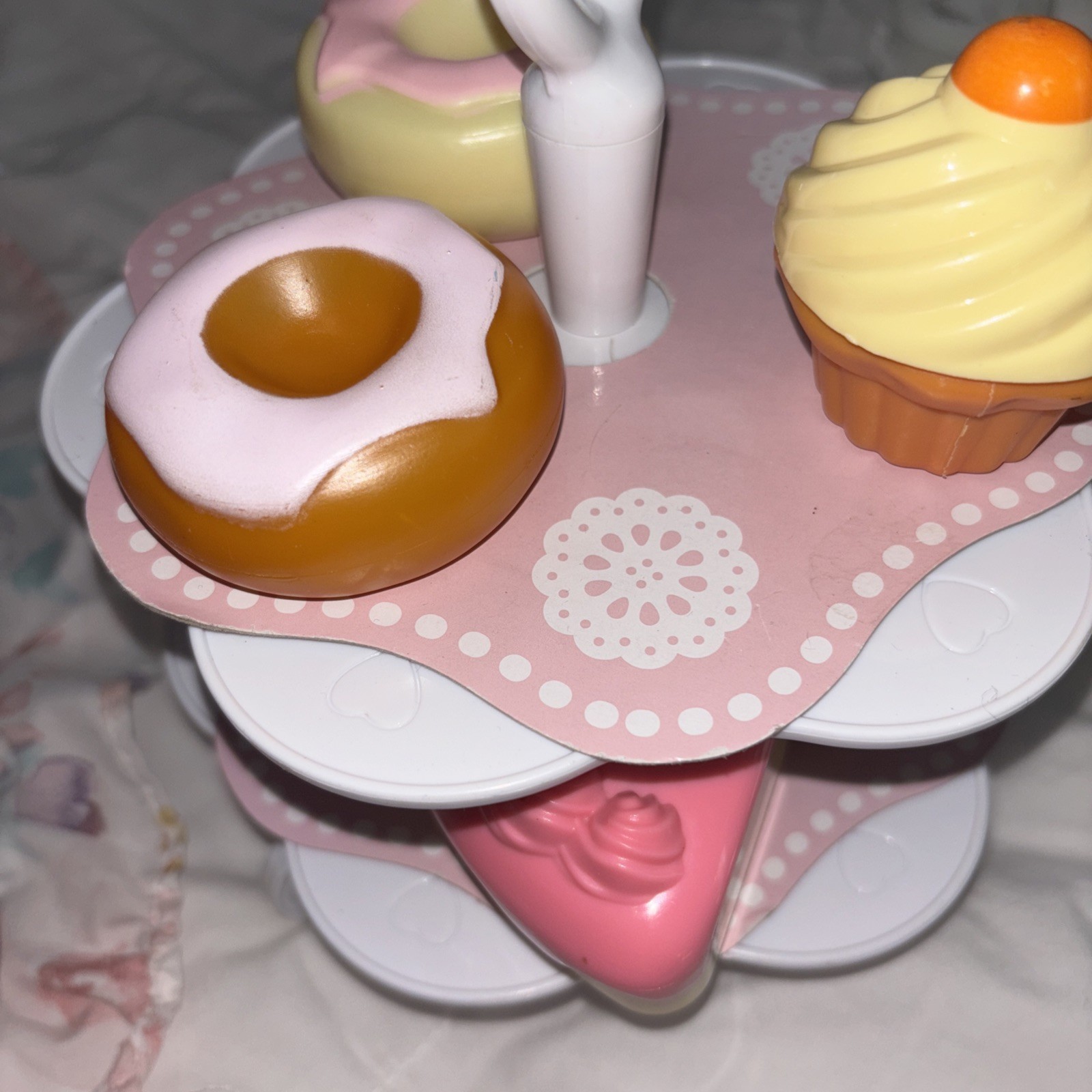 как выглядит CHILDS PLASTIC pink PLAY TIERED SERVING TRAY 6 PLAY DESSERTS. FREE  . фото