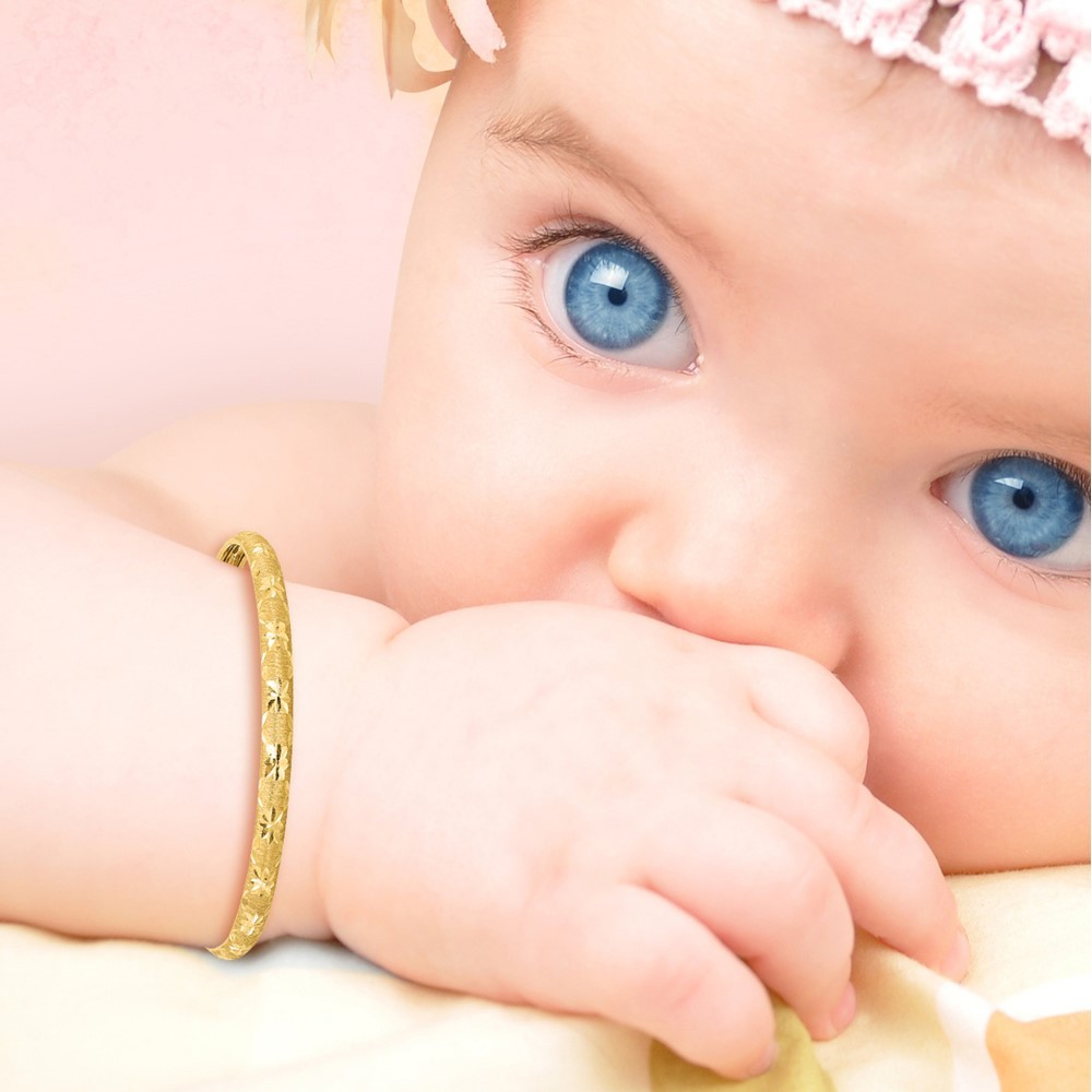 14k Yellow Gold Polished Satin and Diamond-cut Adjustable Baby Bangle
