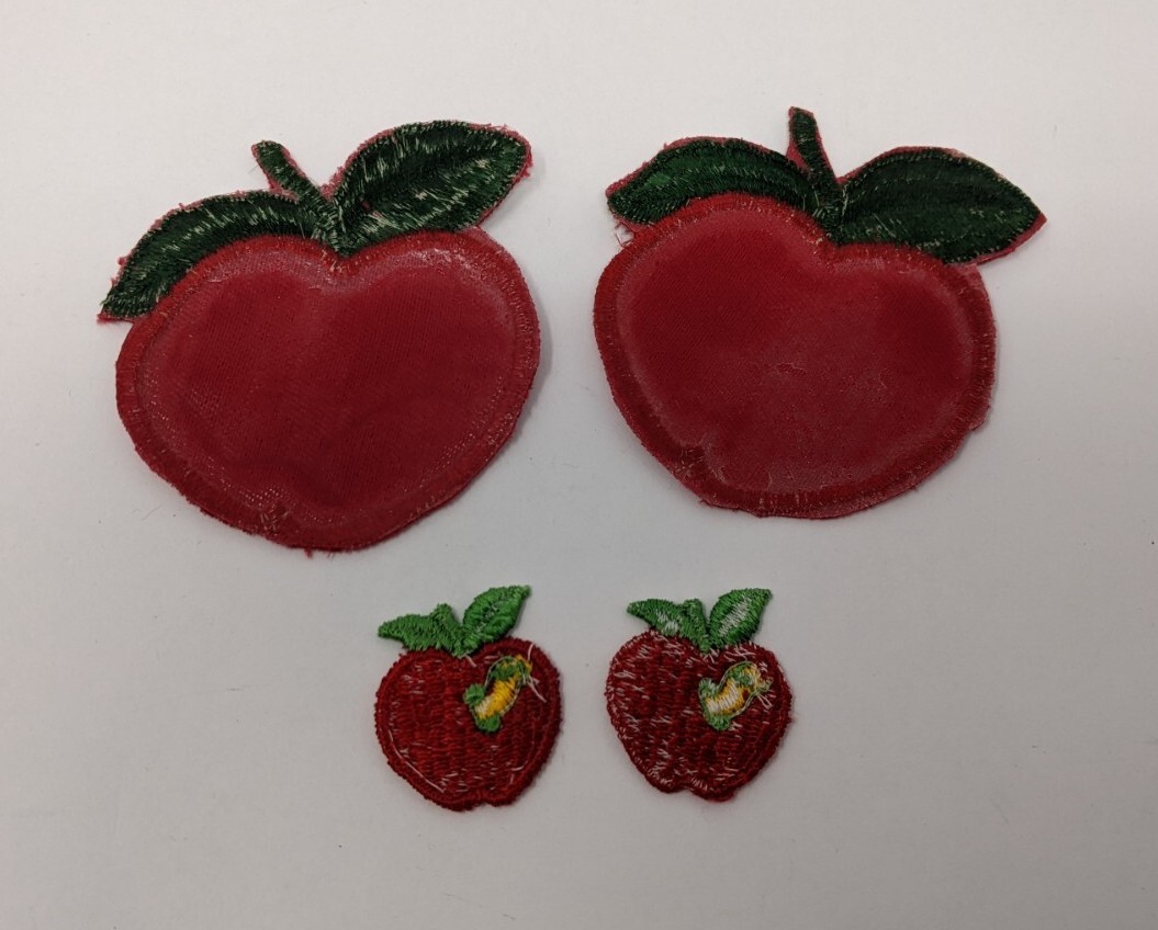 Red Apple Patches Embroidered Iron On Sew On Green Leaf Lot of 4
