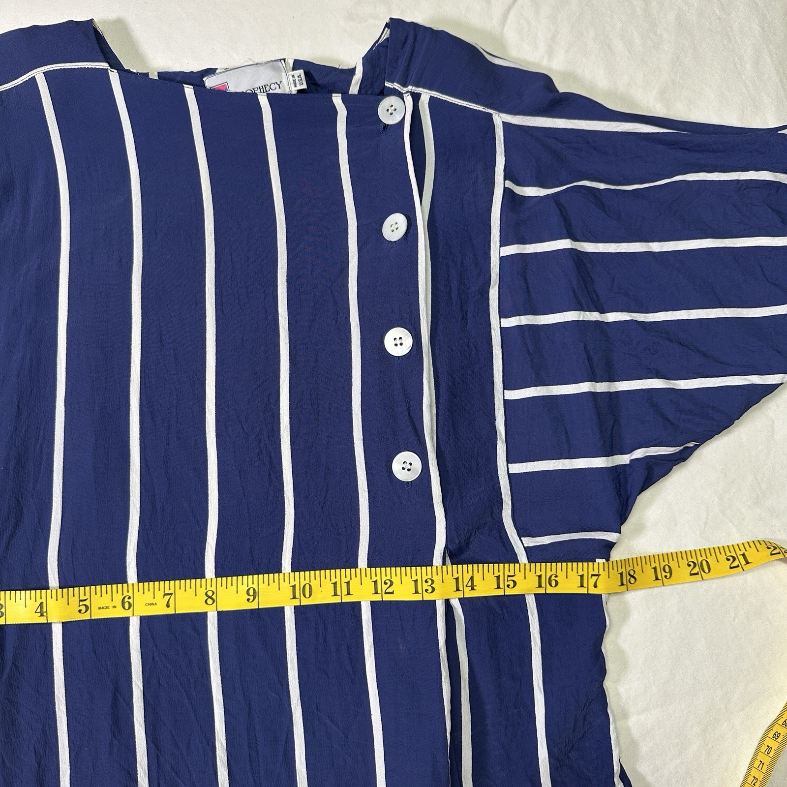 Vintage 80s Prophecy Blouse Navy Stripe Button Shoulder Made in USA