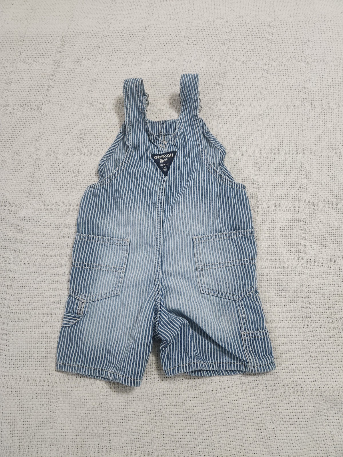 OshKosh B'gosh Vintage Style Blue Striped Denim Shorts Overalls