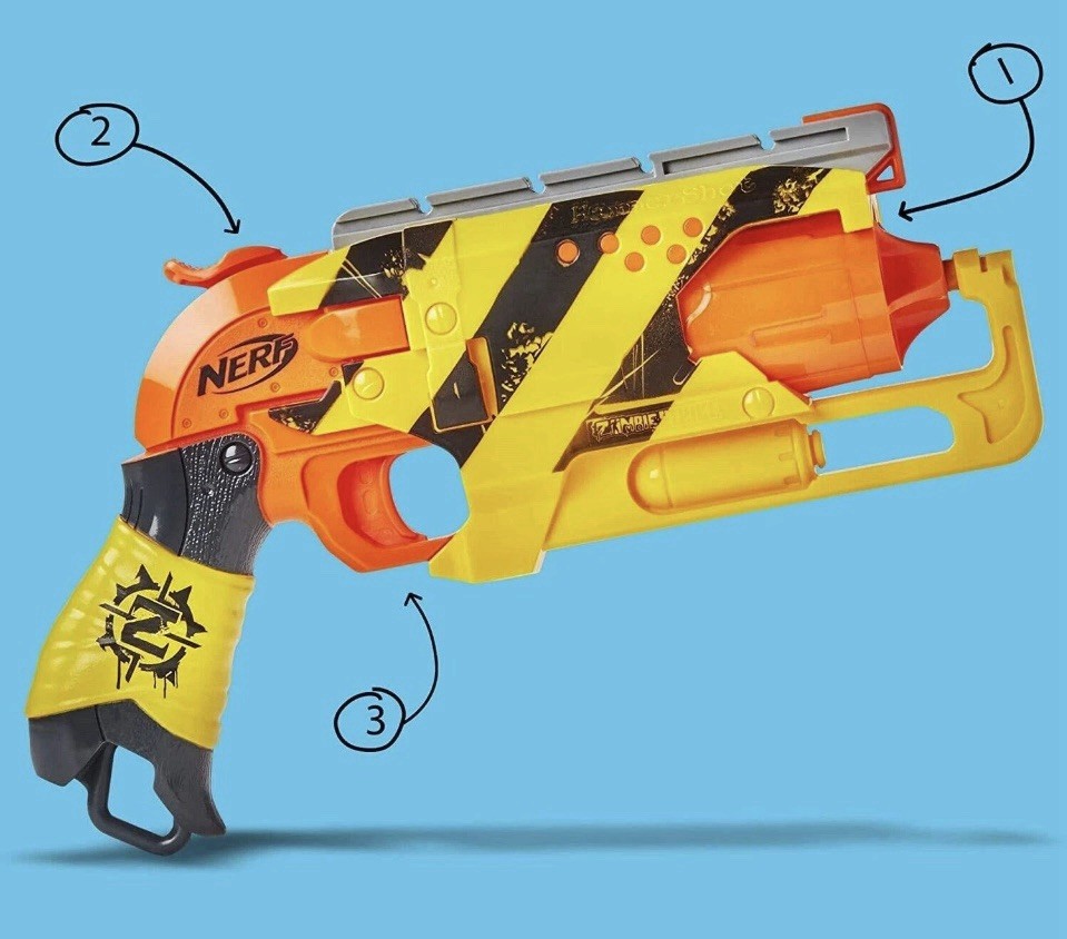как выглядит NERF Zombie Strike Hammershot Blaster Pull-Back Hammer-Blasting Action 8 Toy фото