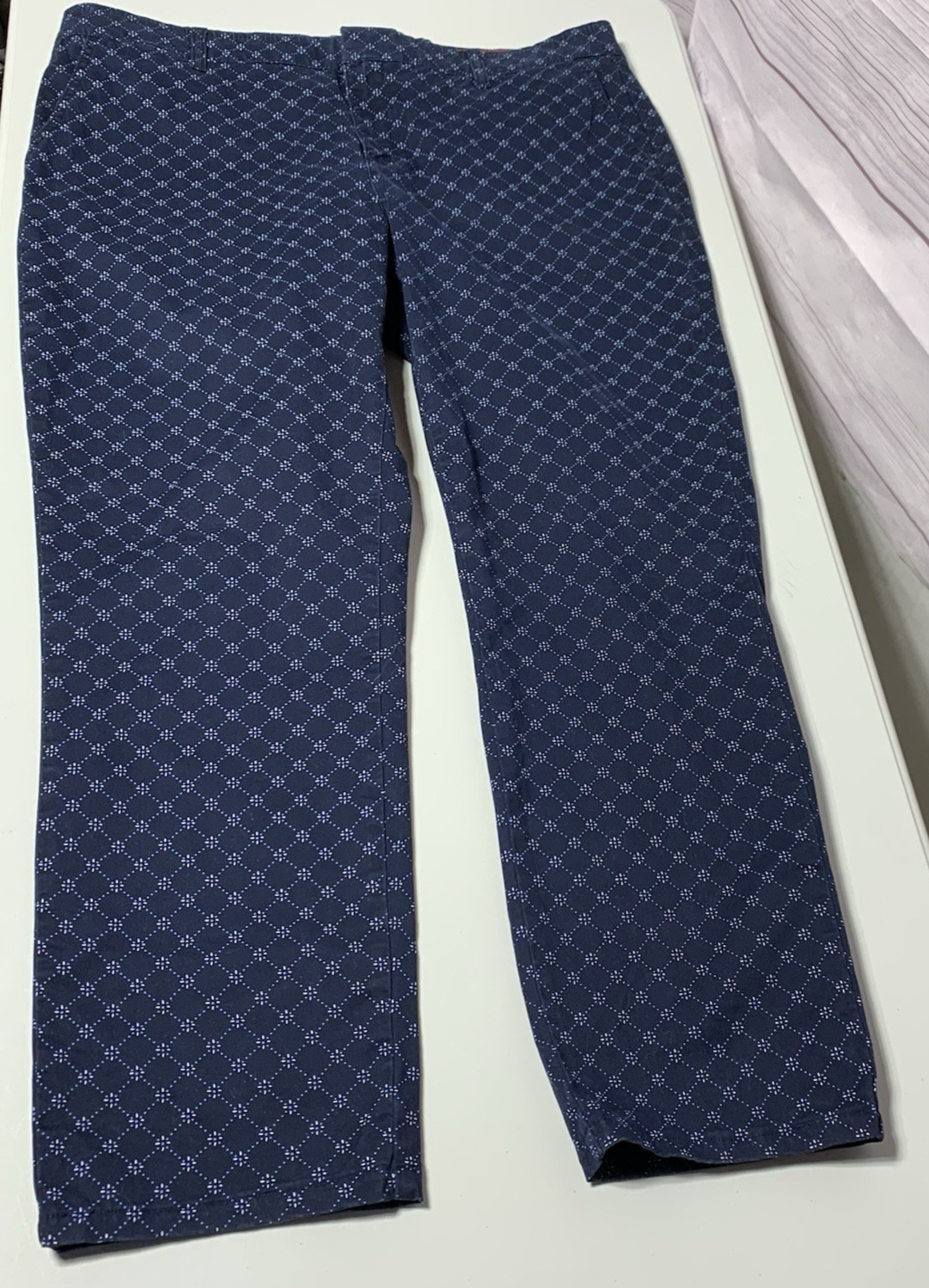 Tommy Hilfiger Navy White Baby Blue Print Women's Cotton Pant Size 16 EUC