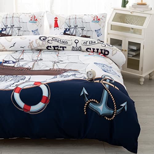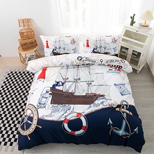 Nautical Bedding Set Twin Size,Nautical Sailboat Bed for Boys Twin 71'x87' D2