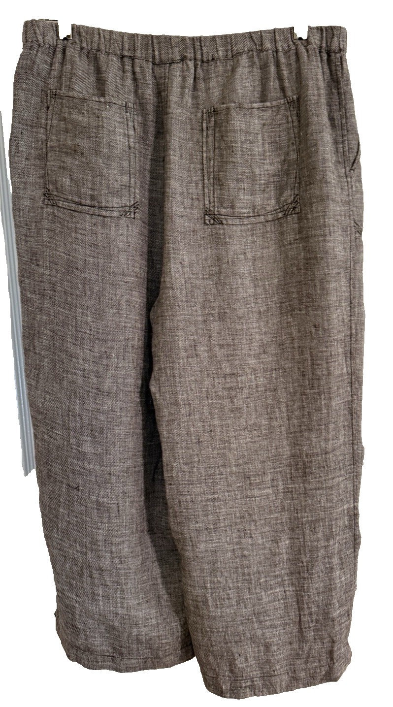 как выглядит Chicos Wide Leg Linen Crop Pant Brown White Heathered Pull On Boho Sz 3 XL A23 фото