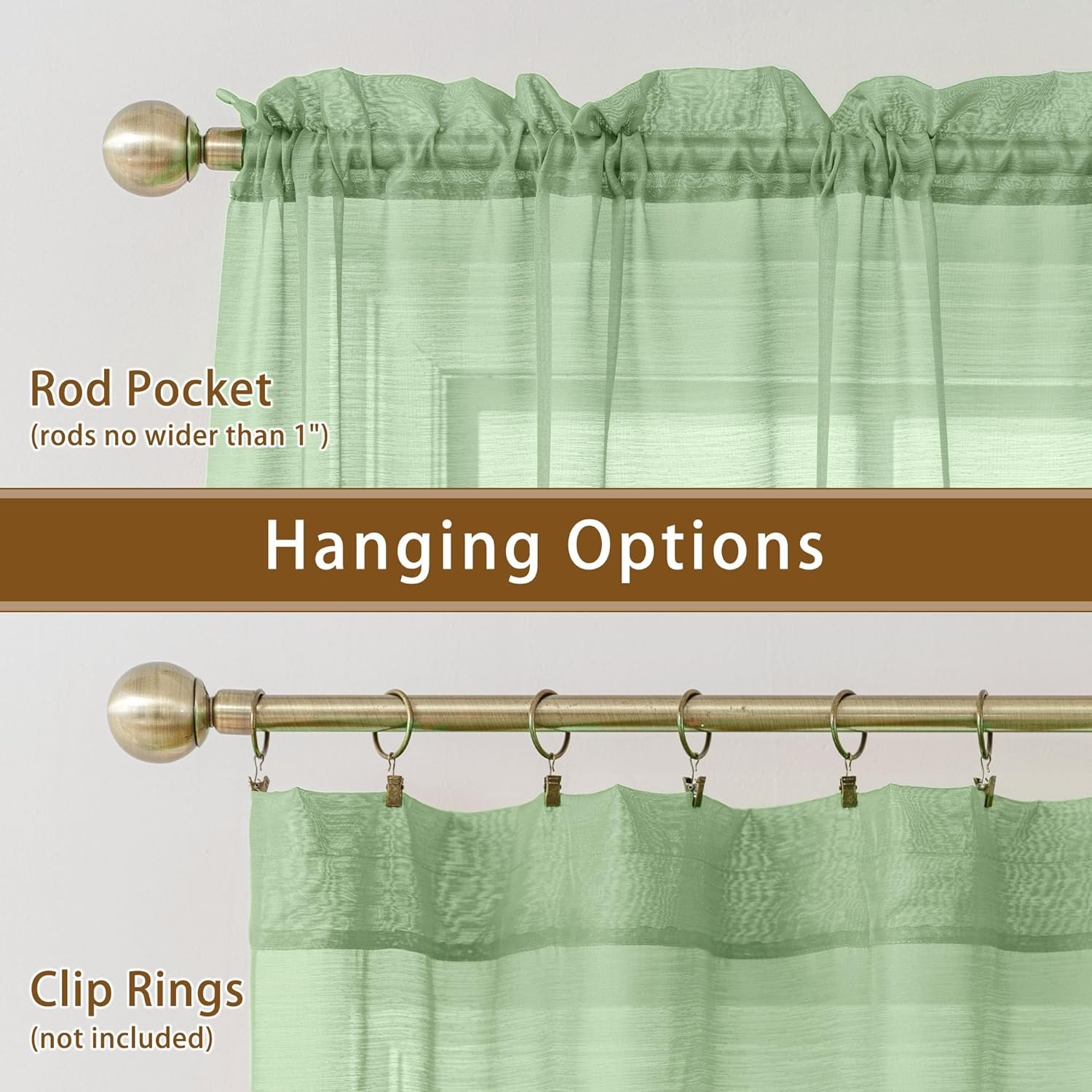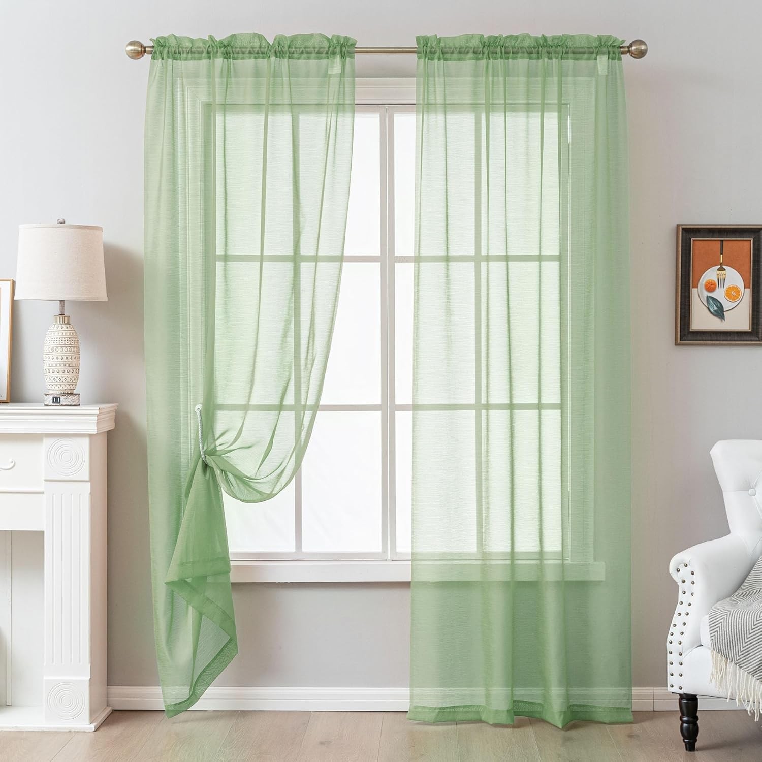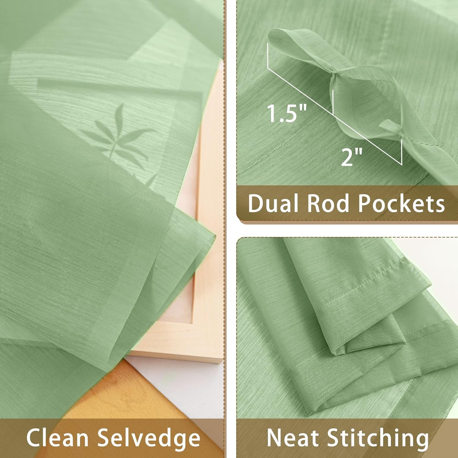 как выглядит Sheer Curtains 63 inch Length 2 Panels Set for W 40" x L 63" Pair Sage Green фото