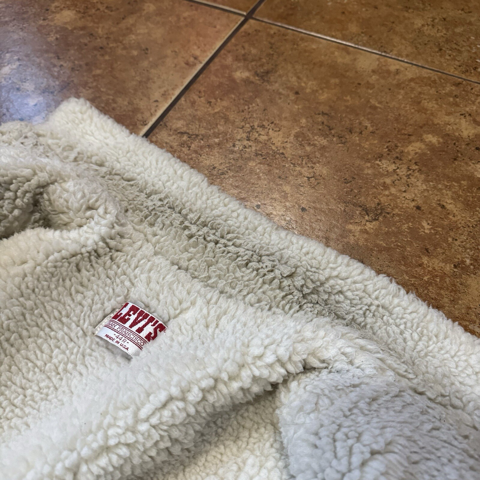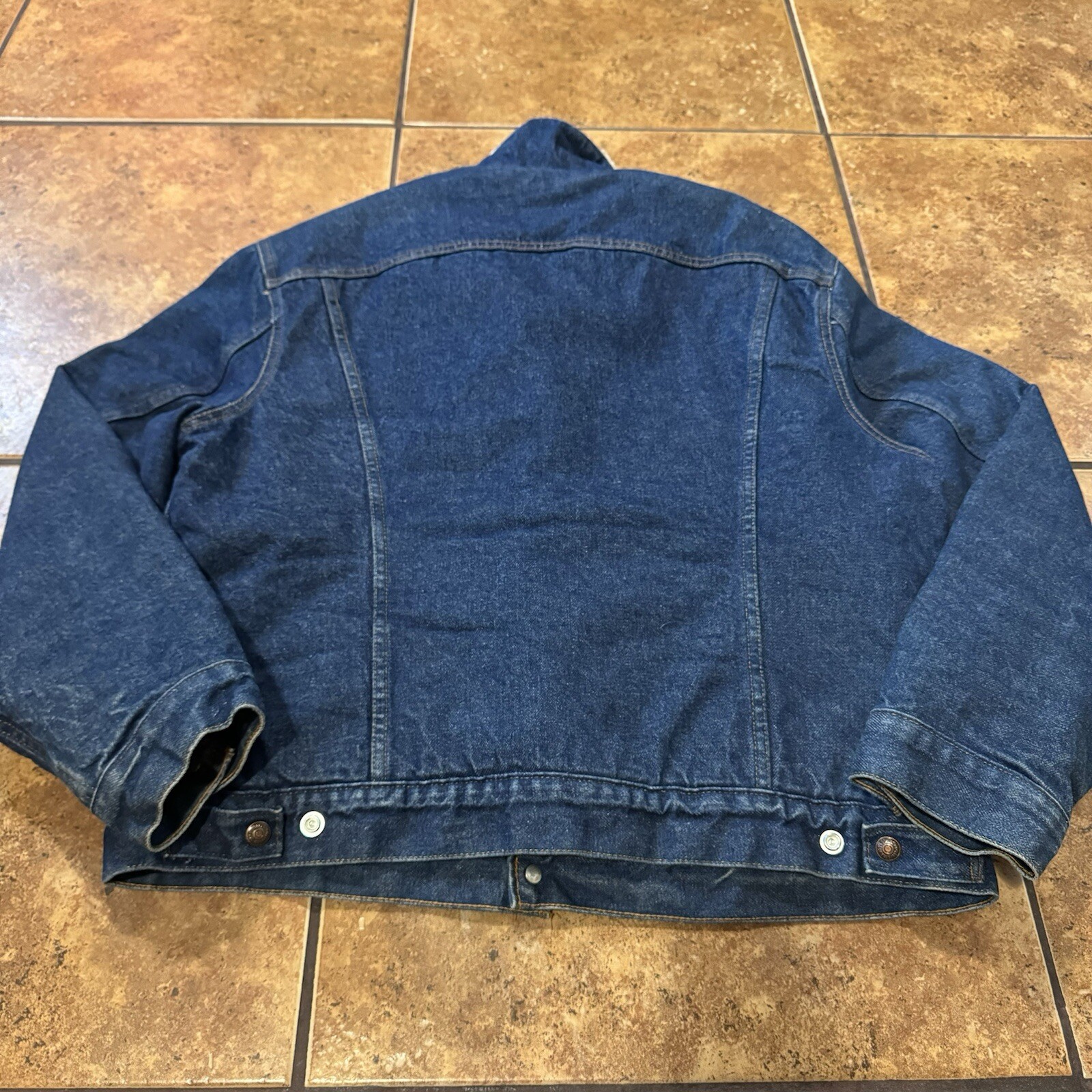 как выглядит VTG Levi s Dark Indigo Sherpa Lined Denim Trucker Jacket Blue 44 Made USA Levi s фото