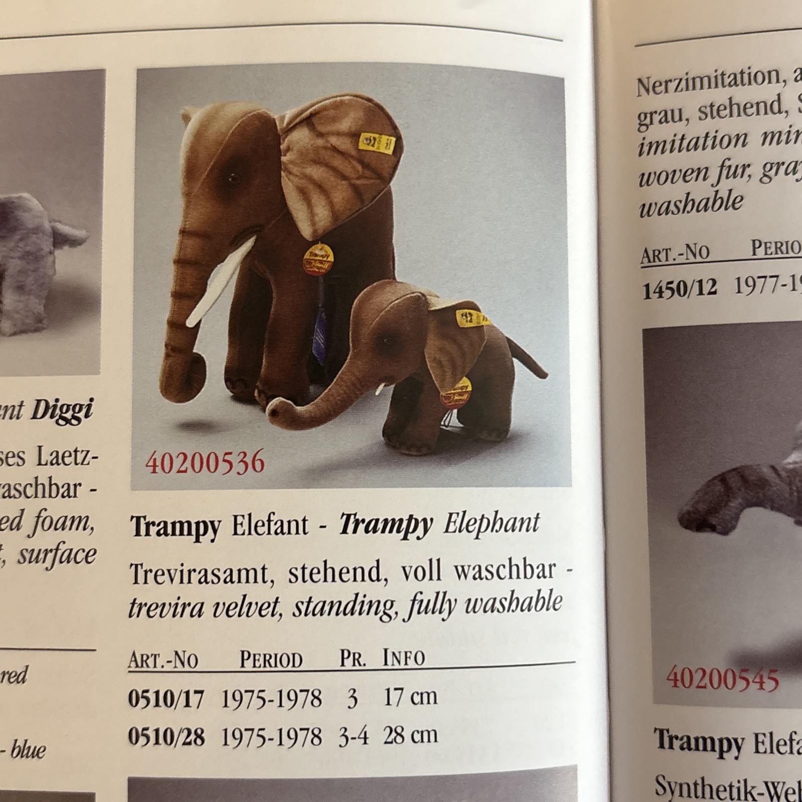 Steiff TRAMPY Elephant Trevira Velvet 11, Made only between 1975-78, No IDs