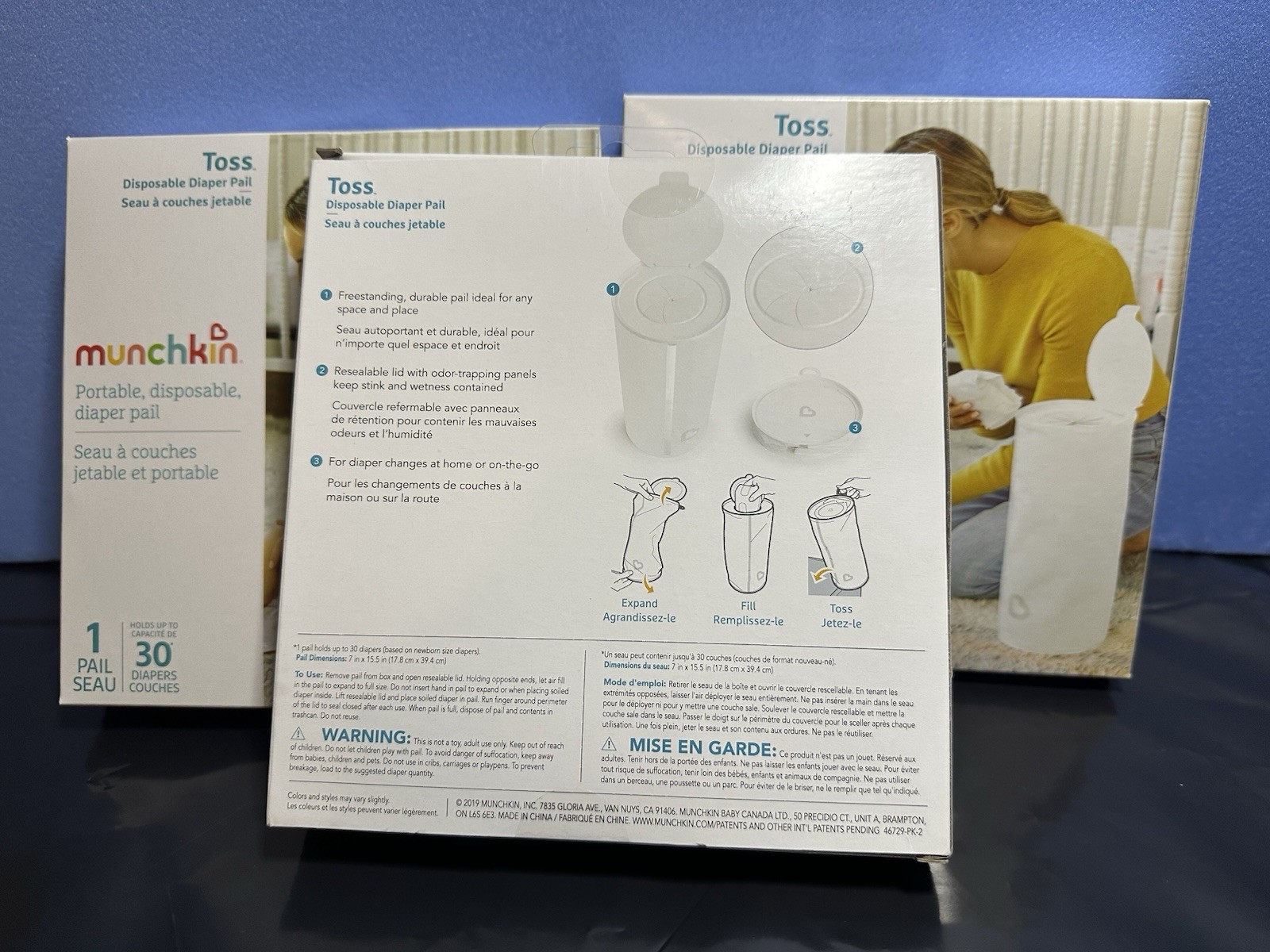 3x Munchkin Toss Portable Disposable Diaper Pail, Holds 30 Diapers