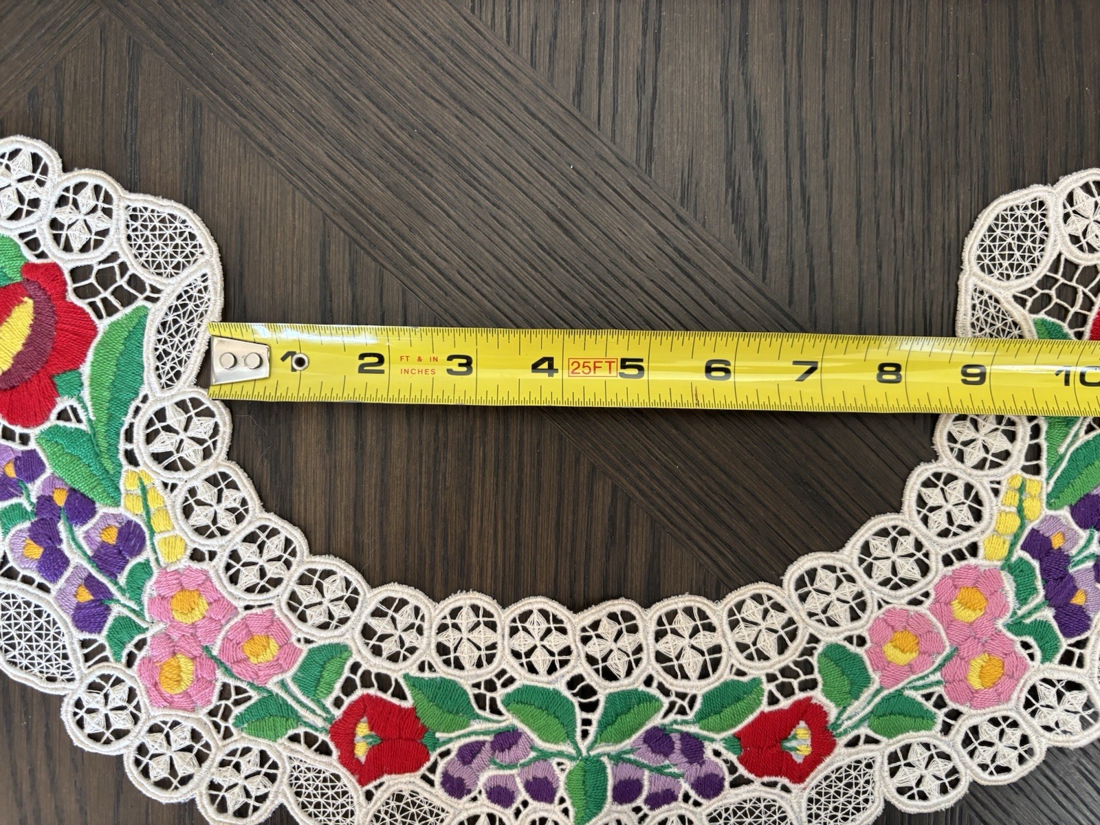 VTG Lace Appliqu Embroidered Flowers Handmade Doily Semi Circle Collar