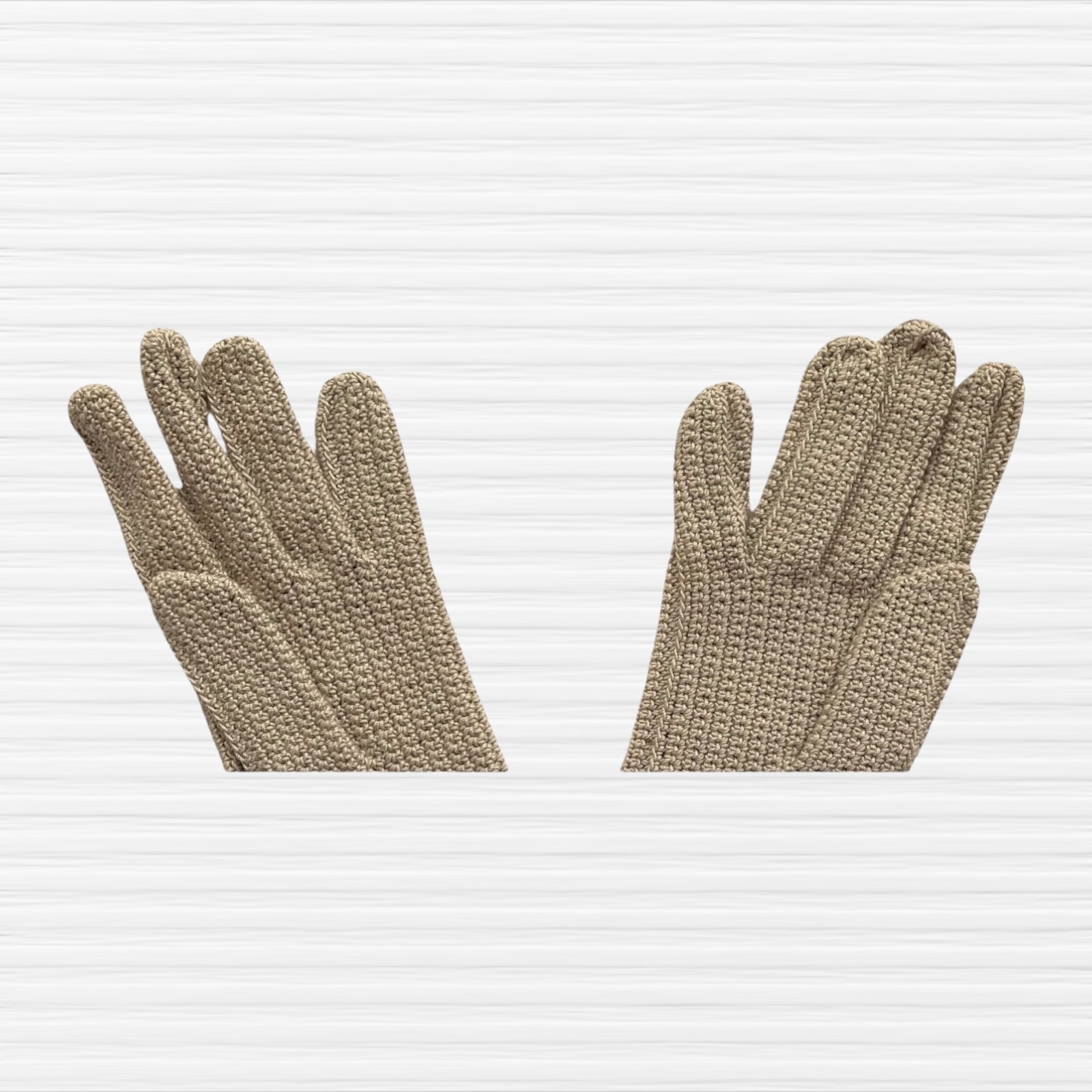 New Vintage 50s 60s Girls Hand Crocheted Gloves Beige Mercerized Cotton Sz Small