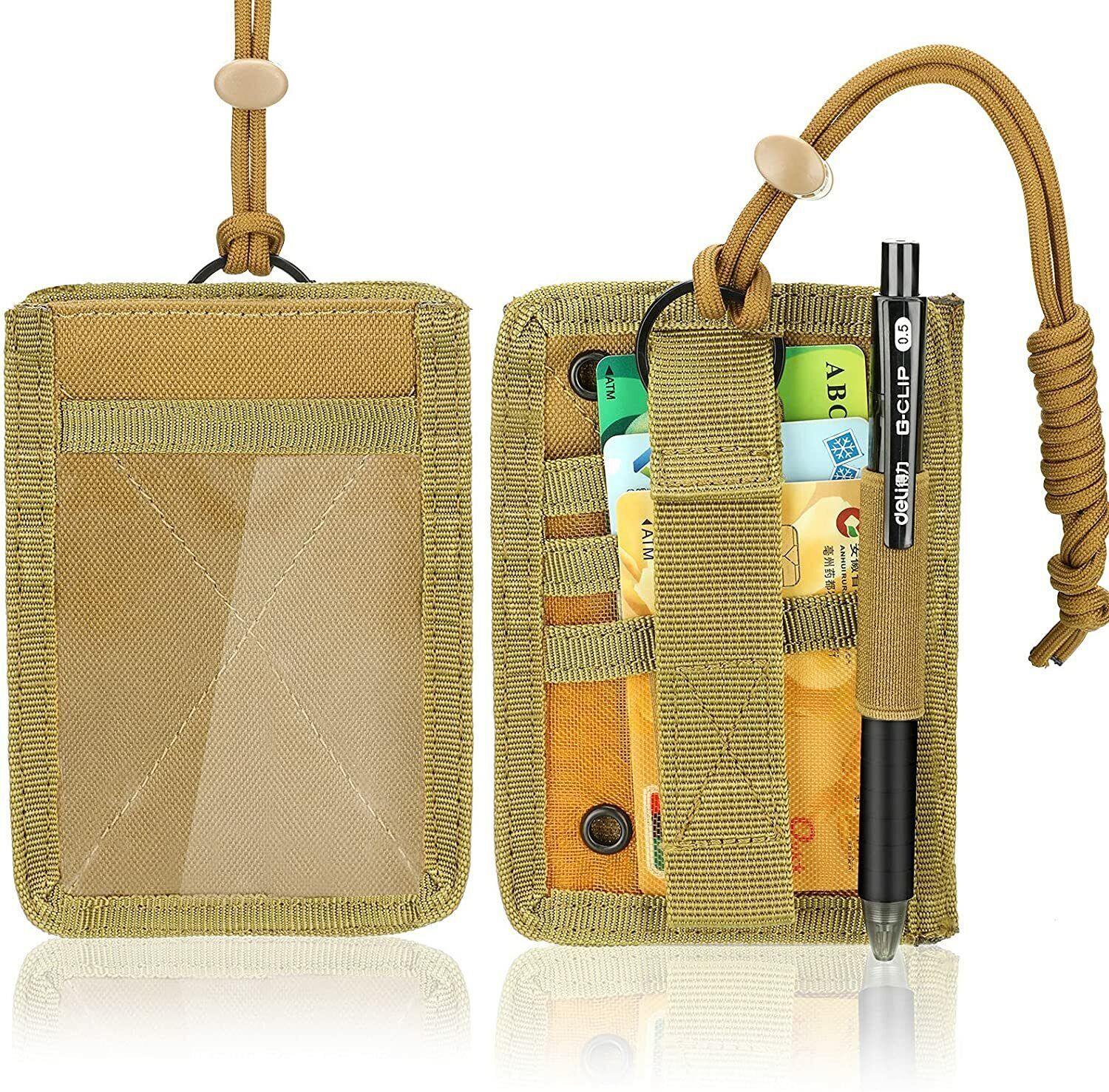 • Tactical ID Card Badge Holder Patch Neck Lanyard Key Ring Credit Card Organizer