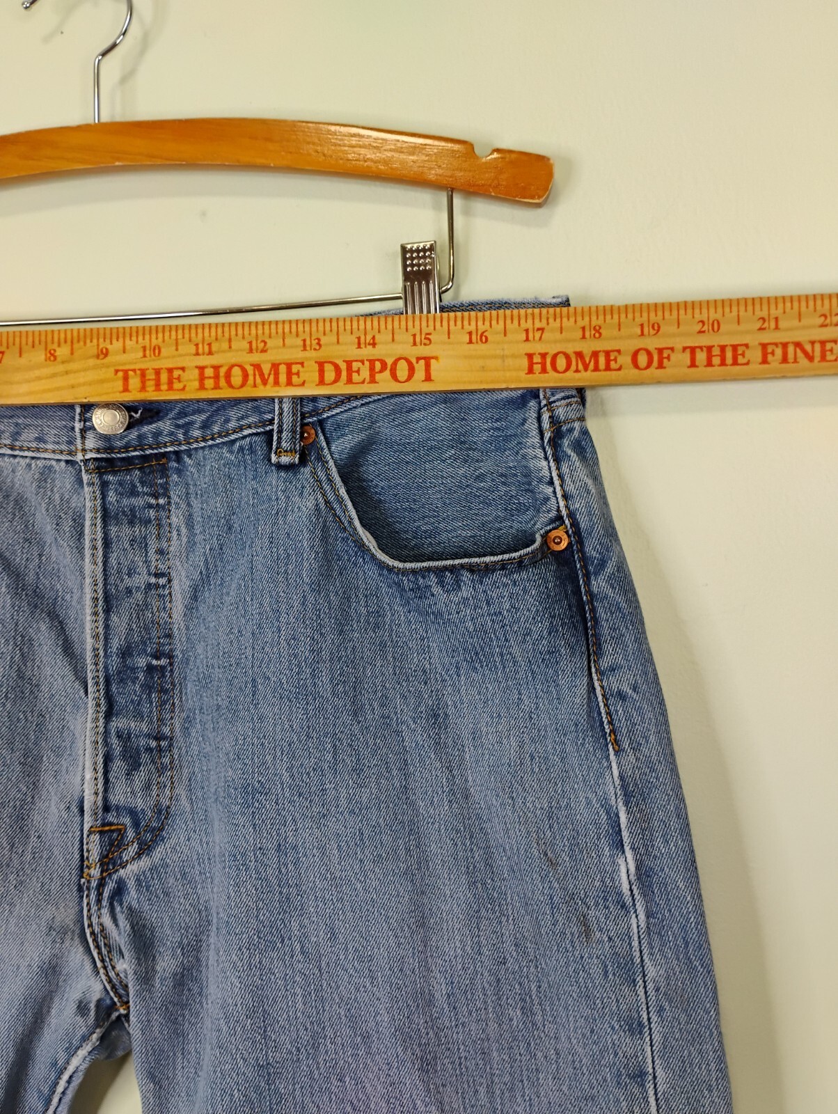 как выглядит Levis 501 Jeans Mens 36x32 Straight Leg Medium Wash Button Fly Distressed фото
