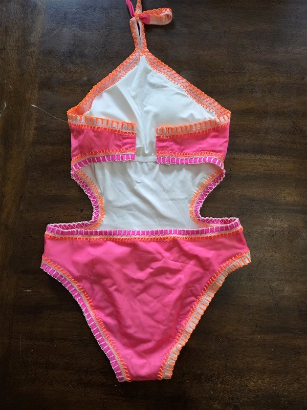 как выглядит NWT Pilyq Platinum S Crochet Halter Neck 1PC Pink Monokini SwimSuit 127093 фото