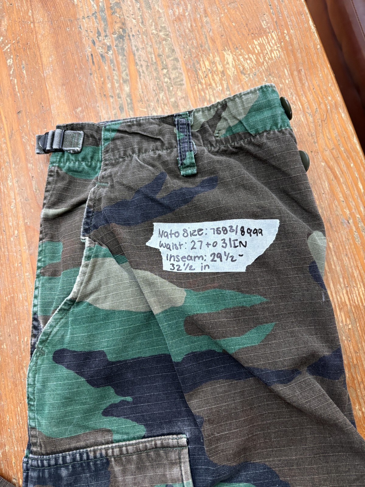 как выглядит Vtg US Military Camo Combat Cargo Pants 7583/8999 Waist 27"-31" Inseam 29-32 фото