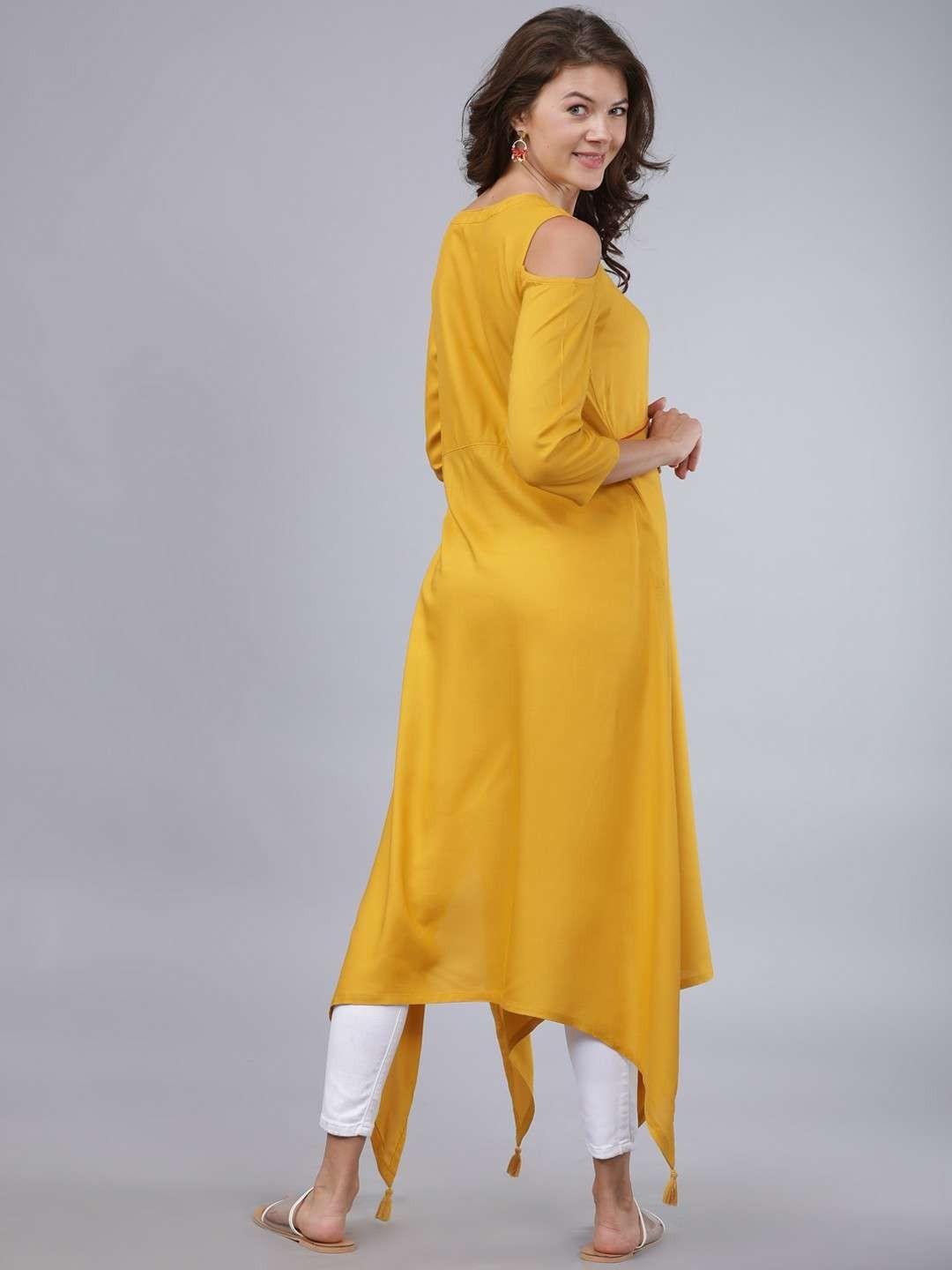 Women Mustard Yellow Rayon Kurta A-Line Tunic Indian Dress Eid Diwali Boho