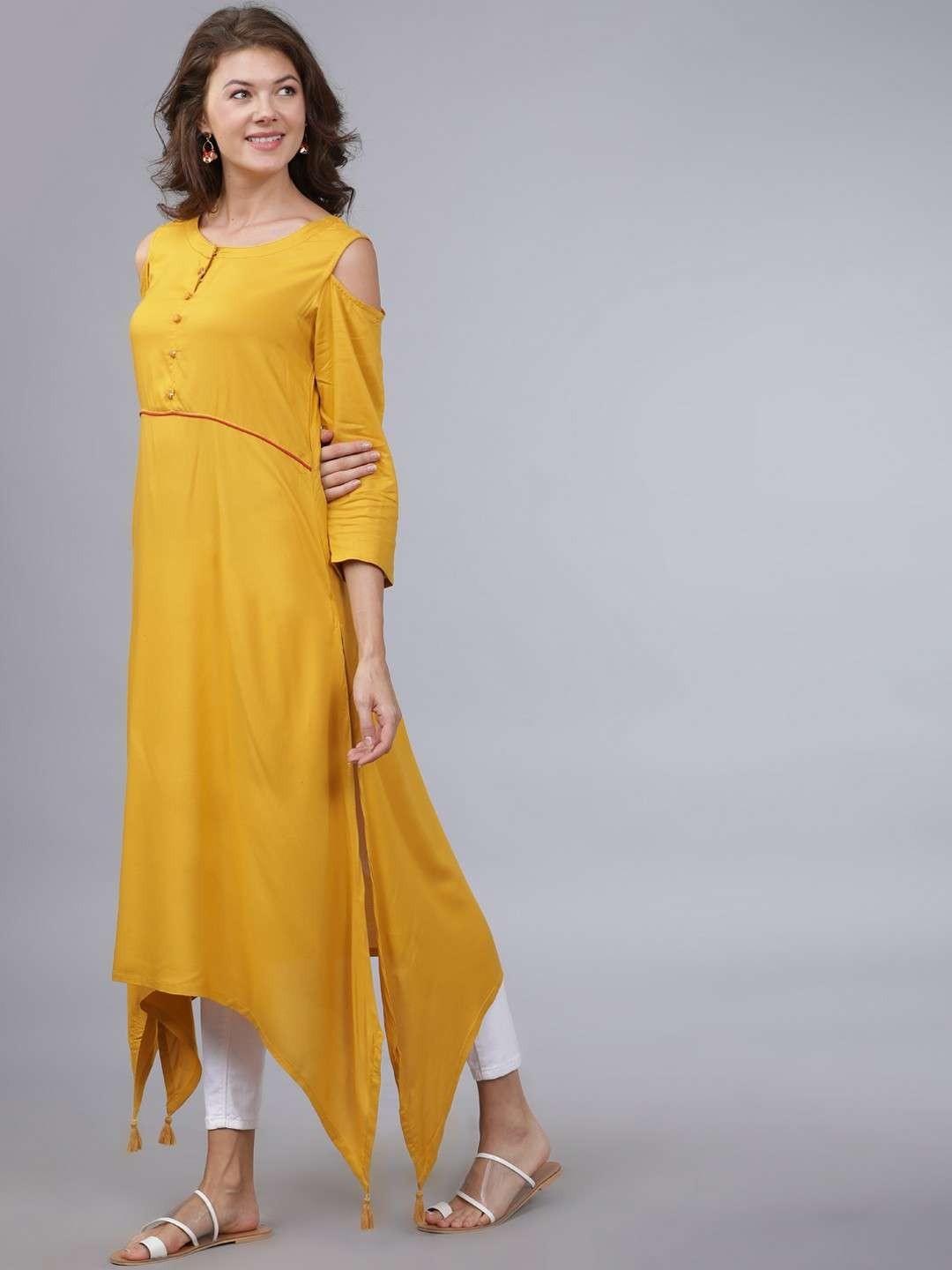как выглядит Women Mustard Yellow Rayon Kurta A-Line Tunic Indian Dress Eid Diwali Boho фото