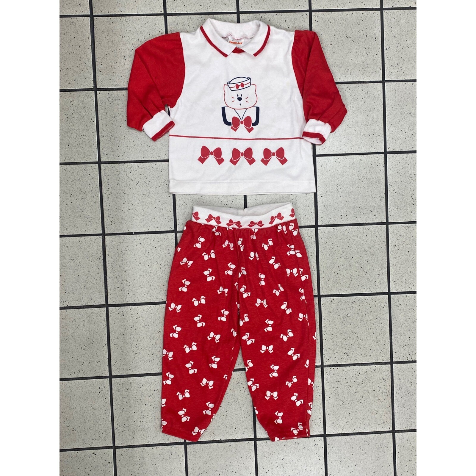 Health-tex Vintage Pajama Set Sailor Bear Bows Red White 3T